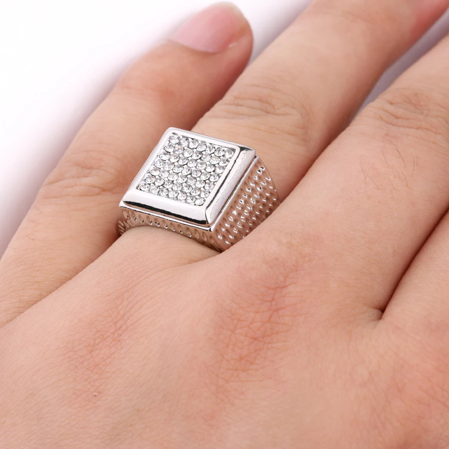 Роскошные 2017 модные белые Кристальные кольца мужские ювелирные изделия Утопия Серебряный Цвет Квадратное свадебное кольцо Кристальный подарок