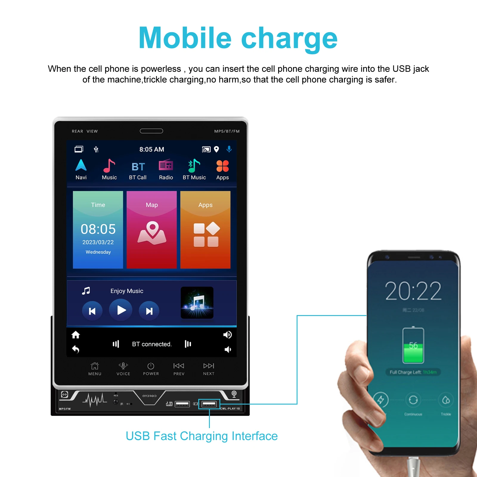 HD 9.5" Glass mirror auto radio player, the display effect is more three-dimensional.