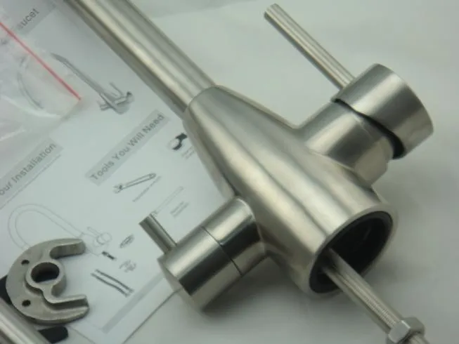 Не содержит свинец нержавеющая сталь 3-х полосная кран фильтр для обеспечивает фильтрованная вода, горячая и холодная вода из независимых водный путь, не нужен дополнительный фильтр Нажмите на ваш счетчик, больше не требуется сверление, экономия столешницей и затрат на рабочую силу для вас.