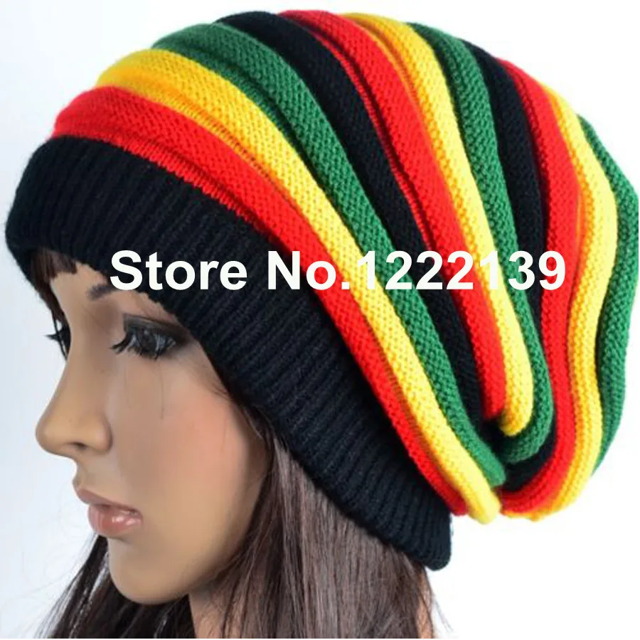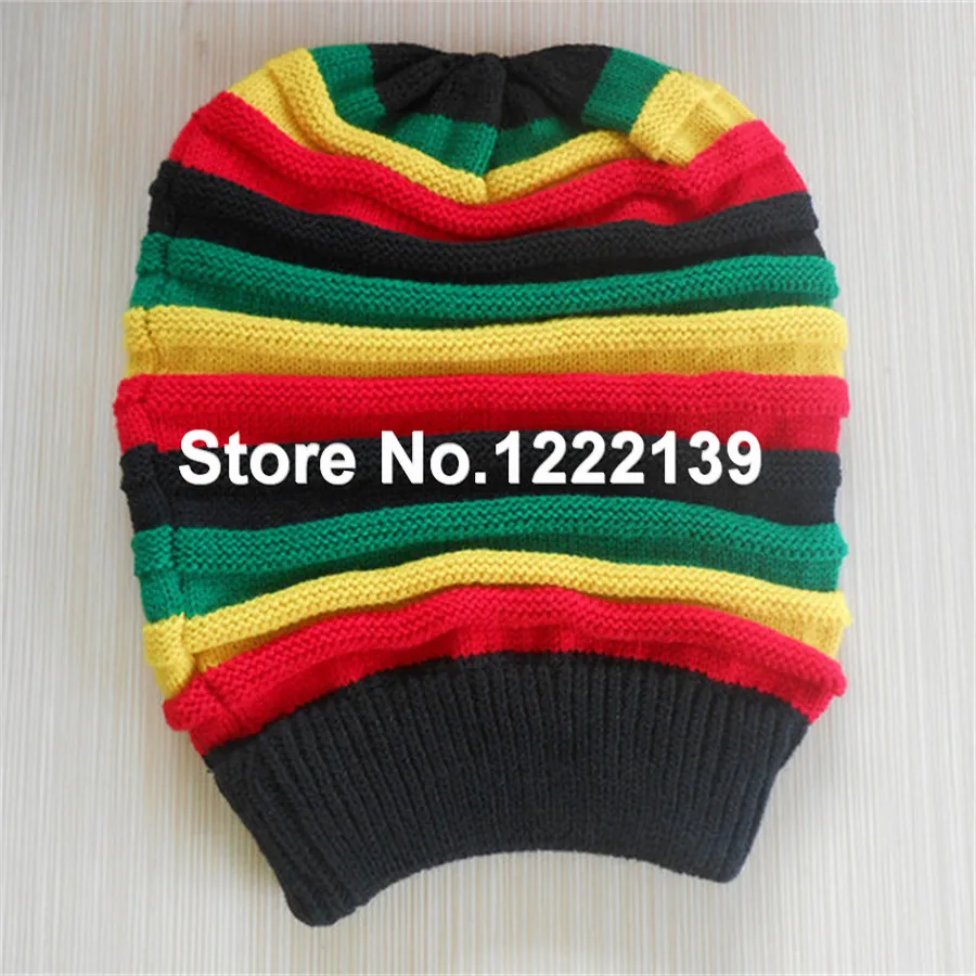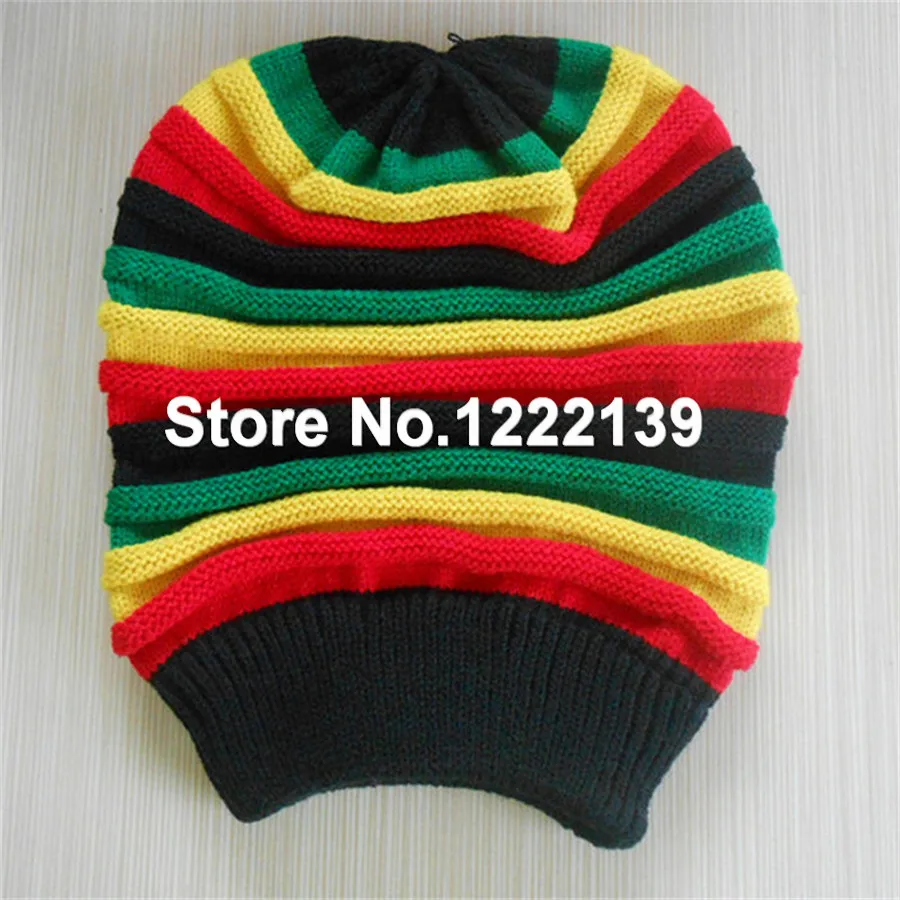 Мода на Ямайке Rasta Reggae шапочки шапочка многоцветная полоса Хип-Хоп Мешковатые напуски шапочки Skullies шляпа Gorro