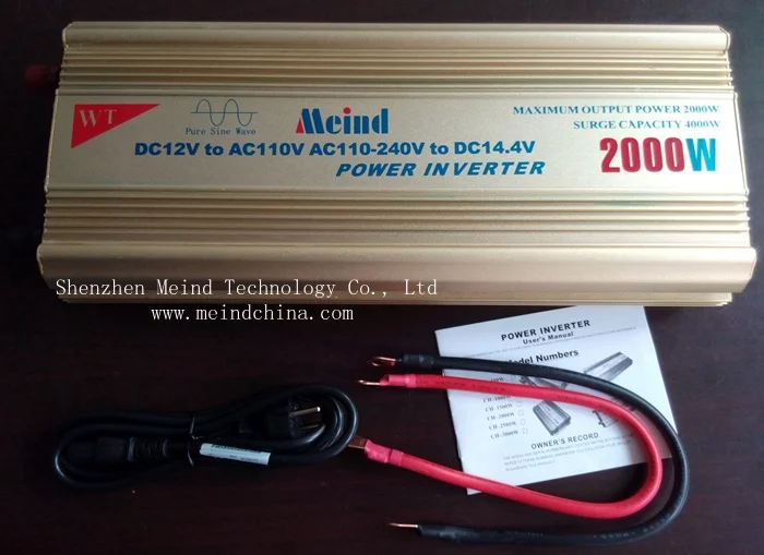 Meind 2000W Чистая синусоида Встроенный зарядное устройство инверторПреобразует питание постоянного тока в чистую, стабильную мощность переменного тока. Отлично подходит для питания бытовой техники непосредственно от батареи 12 В, этот инвертор будет поставлять стабильную мощность для запуска небольших электронных инструментов, воздушных насосов, электронных дверей, небольших моторов и холодильников, которые модифицированный синусоидальный инвертор не может. Чистые синусоидальные инверторы обеспечивают чистую мощность с очень низким гармоническим искажением, без статического или гудящего шума. С пиковой импульсной мощностью 4000 Вт и непрерывной мощностью 2000 Вт, этот продукт является идеальным решением для аварийных ситуаций с отключением питания и гарантирует оптимальную Совместимость с чувствительным оборудованием, компьютерами, двигателями, телевизоры и многое другое! Компактный и портативный, этот инвертор идеально подходит для использования на рабочих местах, на лодках или для постоянного использования в установке солнечной энергии. Характеристики многочисленные функции безопасности, включая сигнализацию перегрузки и светодиодный светильник, мягкую систему запуска, низкий заряд батареи, входное напряжение перегрузки постоянного тока, Выходная перегрузка, температура перегрузки, короткое замыкание, И высокоскоростной Вентилятор охлаждения. Его можно использовать и в Солнечной системе. Более подробную информацию по индивидуальному заказу, пожалуйста, свяжитесь с нами.