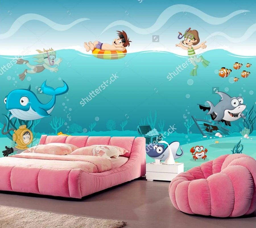 Пользовательские 3d росписи, мультфильм дайверов в подводный мир обои, гостиная ТВ фон диван стены дети спальня papel де parede