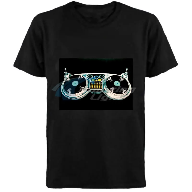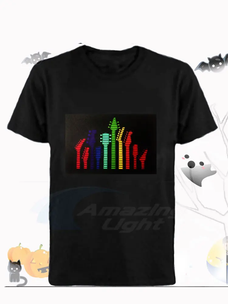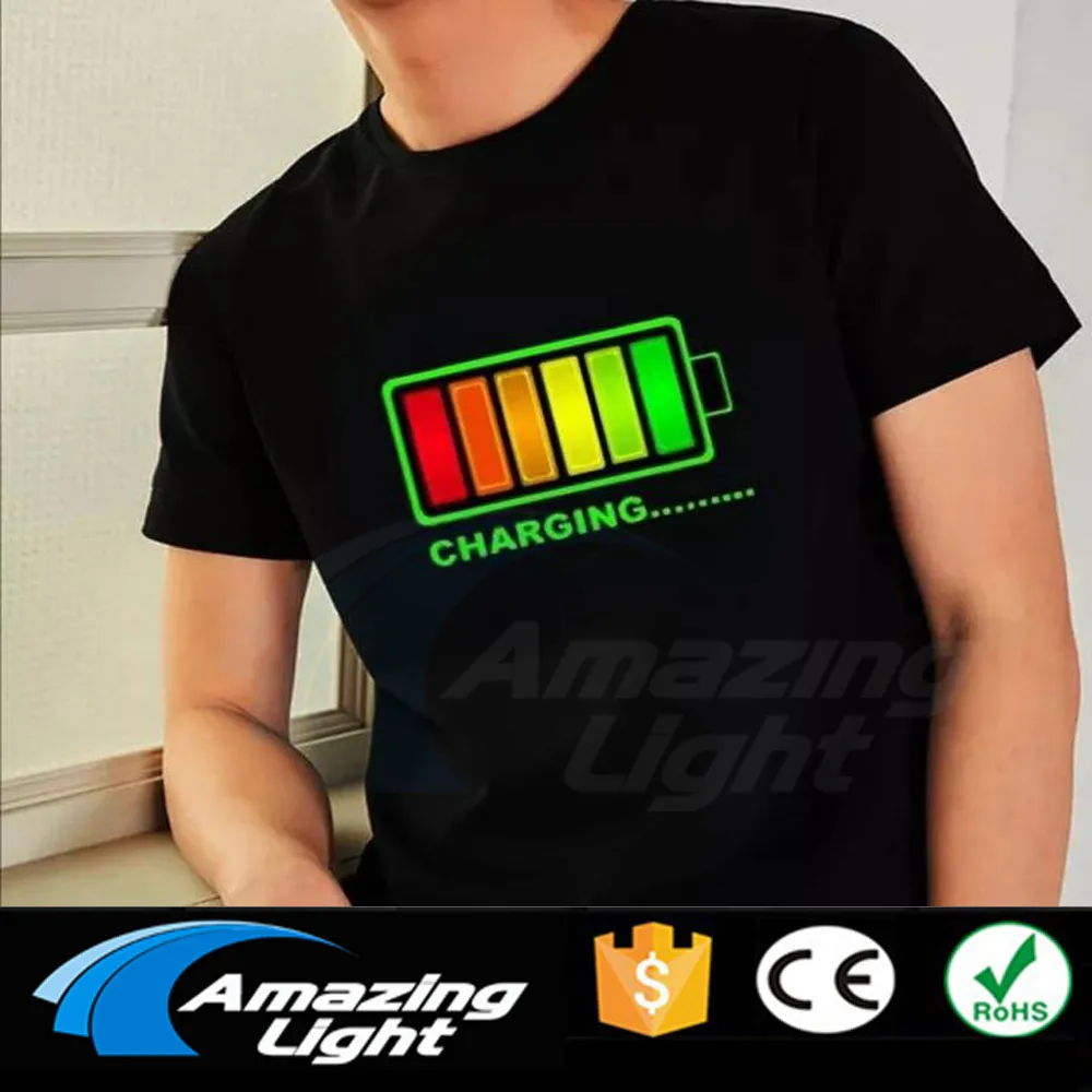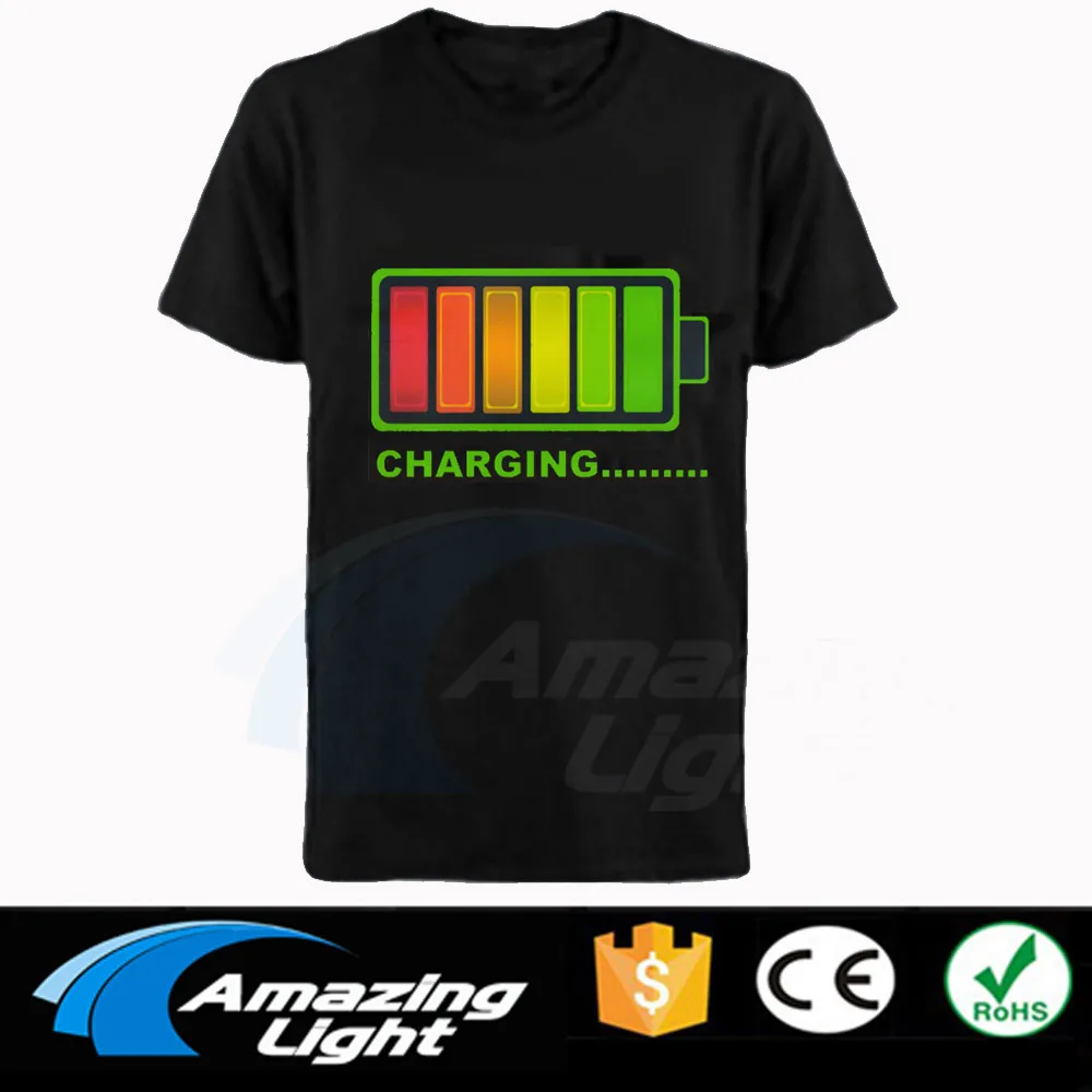 Горячая продажа Высокое качество унисекс 100% хлопок LED футболки Эквалайзер Звук Активированный EL футболка удивительное освещение led футболка