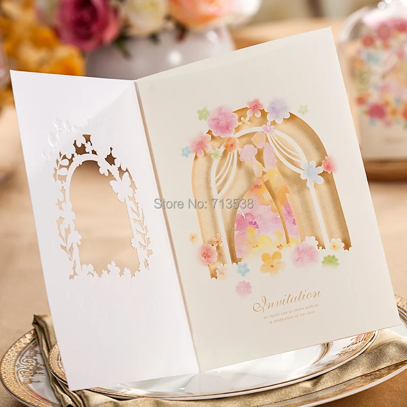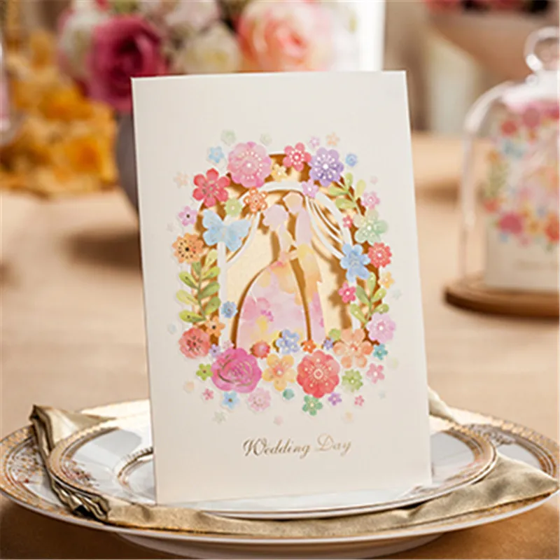 10 шт. индивидуальный лазерная резка цветок жениха и невесты свадебные приглашения бумажные карты приглашения свадебные украшения Mariage сувениры