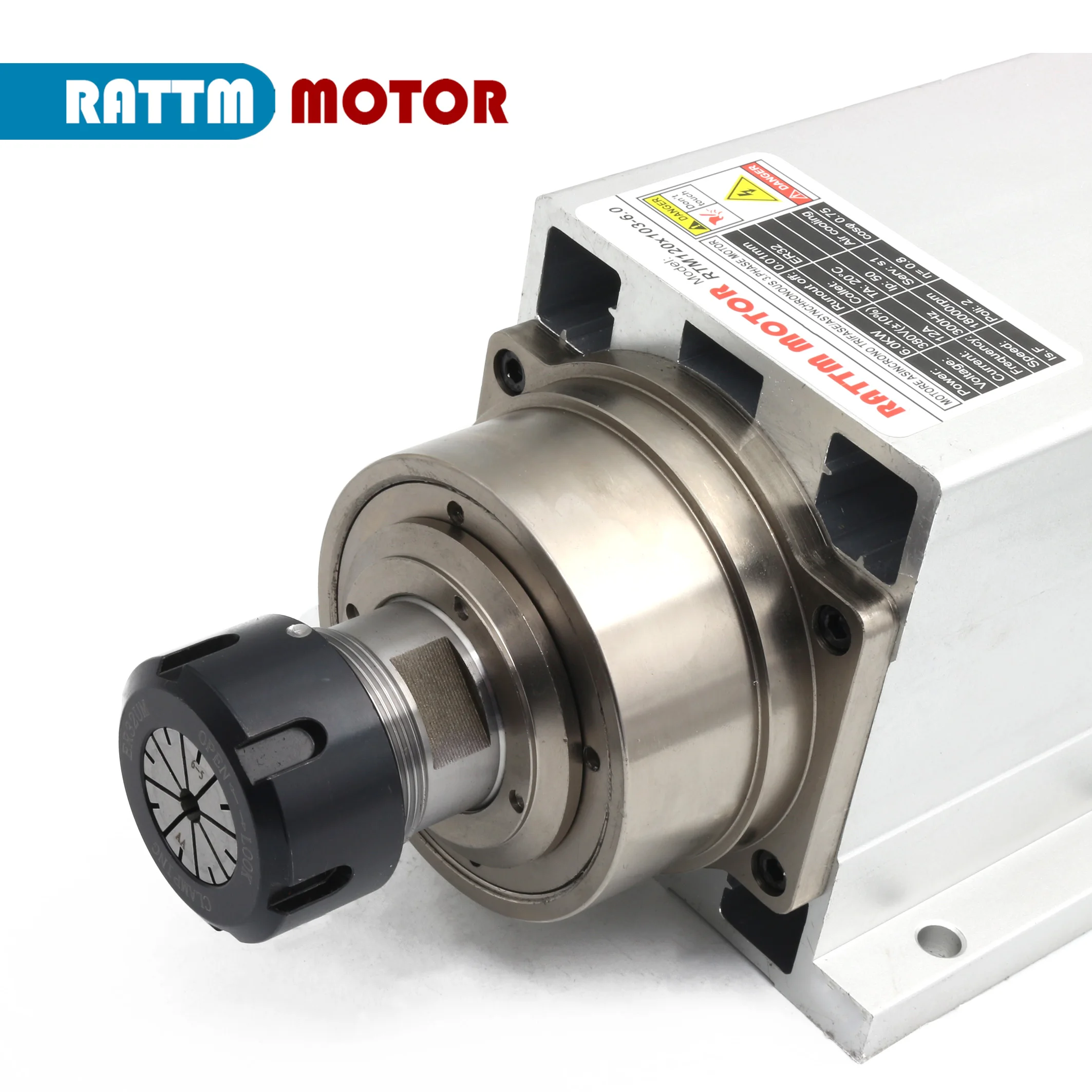 · 1x6 кВт квадратный шпиндель с воздушным охлаждением (ER32 380V,18000 об/мин, 4 подшипника, 300 Гц)