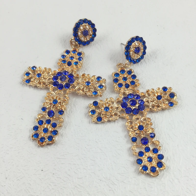 Изделие: Роскошные позолоченные серьги в стиле барокко с кристаллами и перекрестными каплями, жемчужный цветок