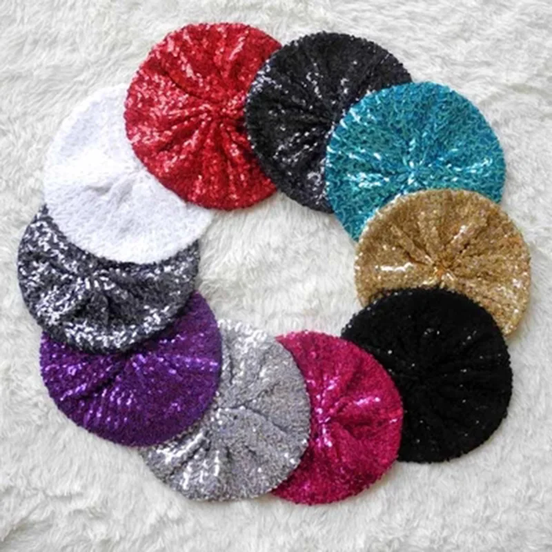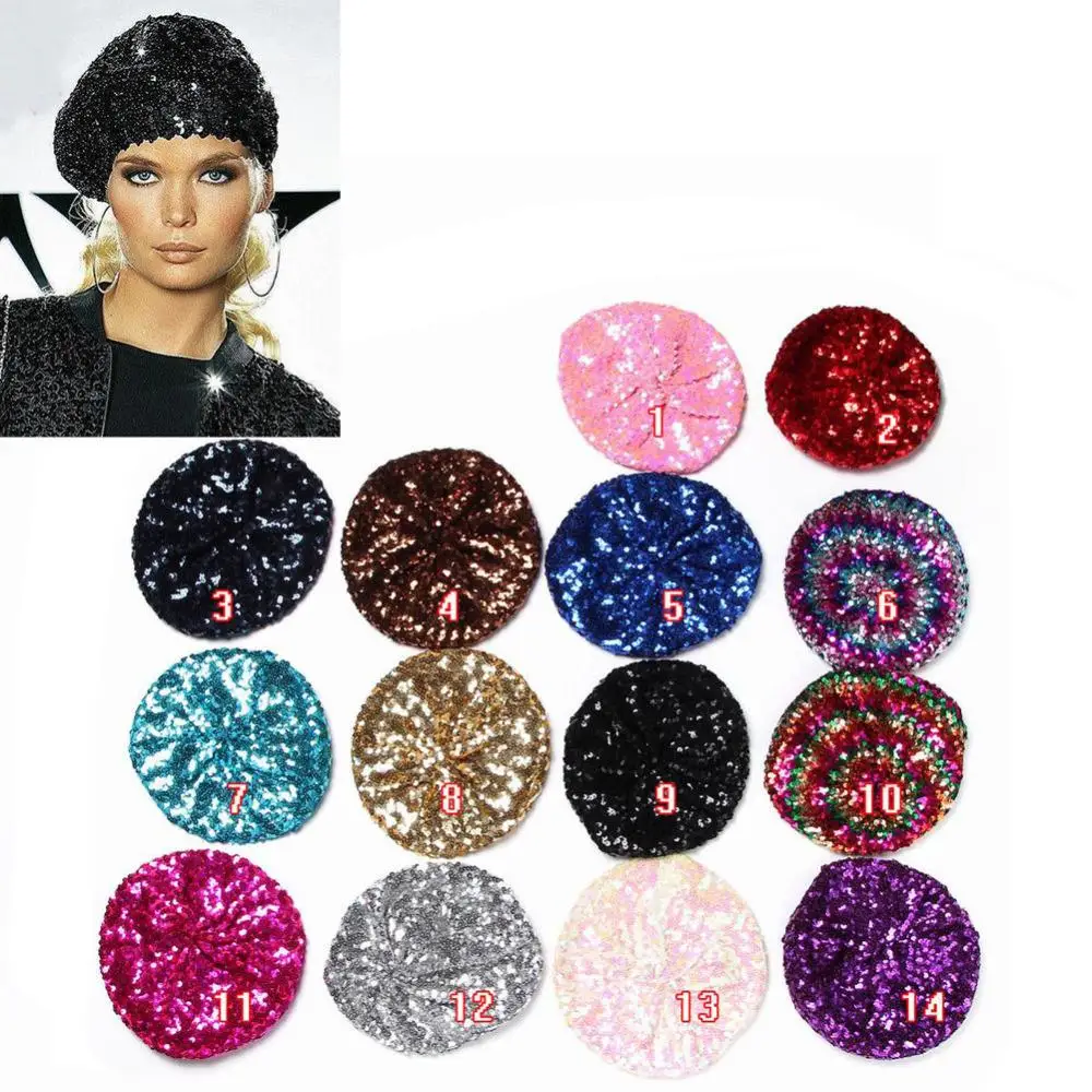 Для женщин леди стрейч металлик Сияющие Блестки берета вечерние шапочка Кепки Клубная танцевальная 12 видов цветов