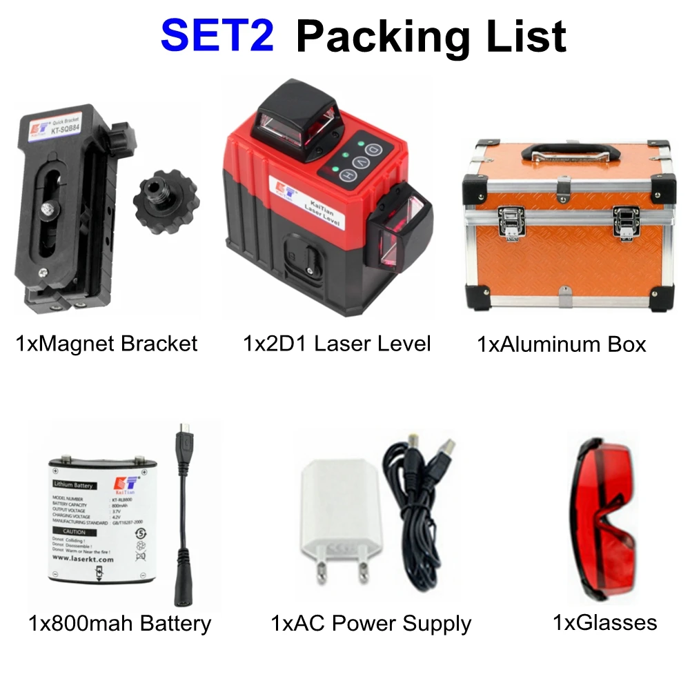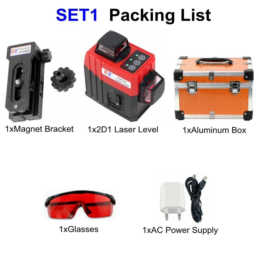 О KaiTian 8 линий 2D лазерный нивелир кронштейн Инструмент особенности: Лазерный уровень 2D1 имеет два лазерных окна, каждое окно может запускать 4 лазерных линии, полностью 8 лазерных линий (4 вертикальных линии, 4 горизонтальных линии, 4 лазерных линии соединяются в плоскость). Длина волны: 650 нм/1 мВт Класс лазера: II Тип демпфирования: магнитный Время выравнивания: 4s Лазерный нивелир линия Ширина на 10 м: 3,5 мм Горизонтальный, вертикальный, Точность: +/-2,2 мм Длина: 10 м Ортотропных точность: 90 градусов +-0,5 градусов Диапазон выравнивания: +-4 (градусов) Время работы: 3 ч/1 шт. 3,7 v/800mah батарея Рабочая температура: от 14 до 122 (по Фаренгейту) Температура хранения: от-4 до 140 (по Фаренгейту)