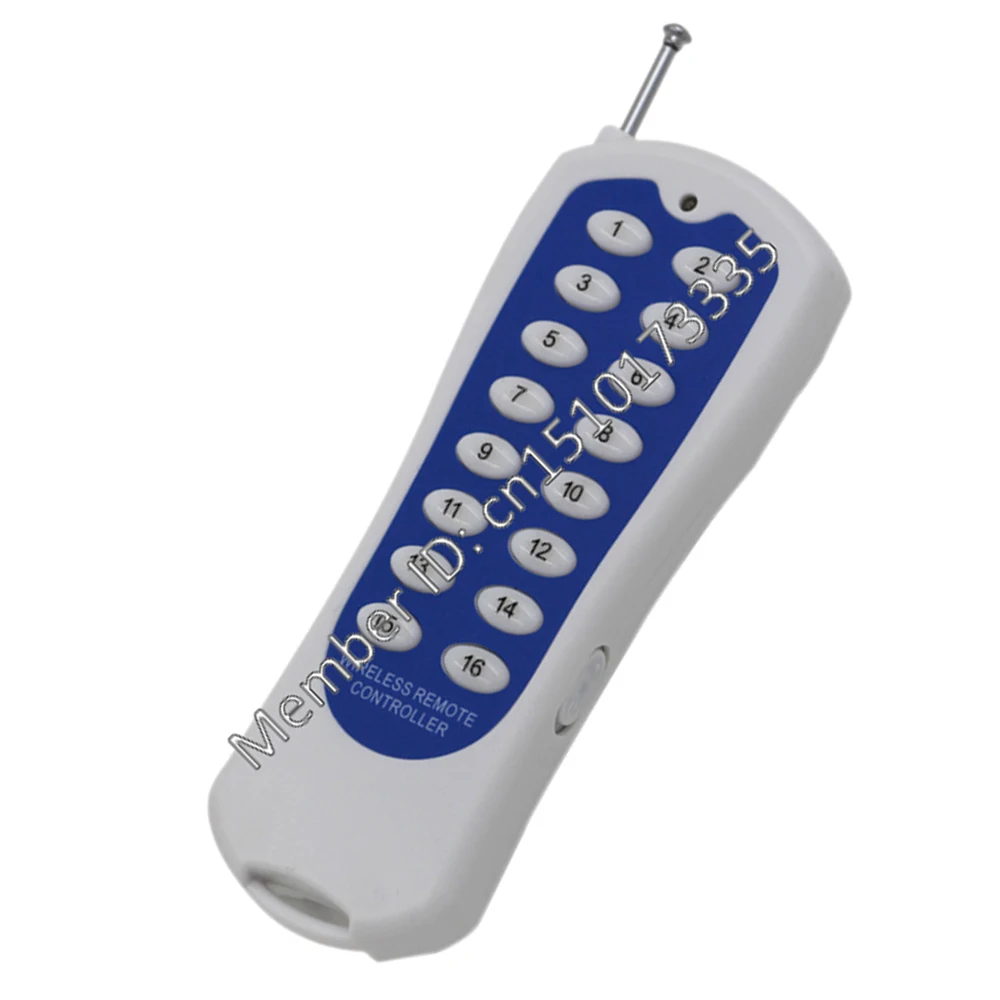 Обратите внимание, что: здесь 1 передатчик и 16 приемник, вы можете иметь систему 16 приемника вкл/выкл одновременно, или 16 приемника работают независимо. 1 Кнопка с 1 приемником. Скажите мне, какой рабочий способ вы хотите. Если вы не сообщите нам, мы отправим его с независимым контролем.
