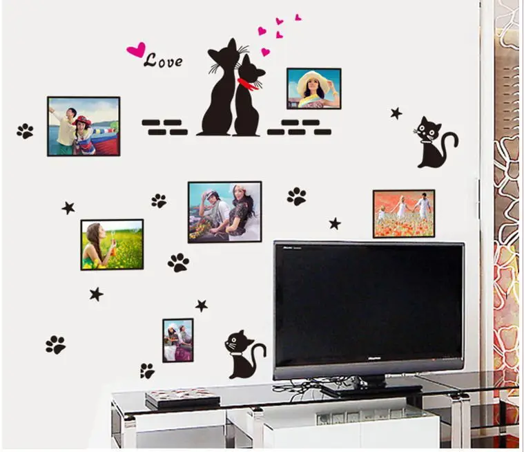 Черная Любовь Кошки фото наклейки на стену в раме гостиной спальни DIY настенные наклейки ПВХ Декор окна свадебное украшение