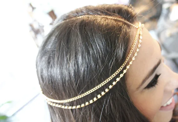 Новинка 2015, модный головной убор со стразами, золотая цепочка для ношения на голове, ювелирное изделие, Богемный Цыганский стиль, свадебная тиара, головная повязка, ювелирные изделия