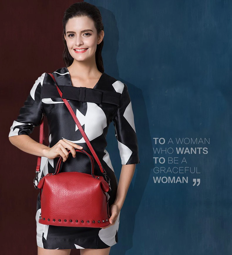 новый Европейский дамы тенденции моды большой мешок плеча заклепки сумка оптом сумки натуральная Кожа женщин сумки
