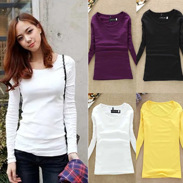 Осень 2014 новых корейских Тонкий был тонкие и длинные участки темперамент V-образным вырезом с длинным рукавом Рубашки повседневные