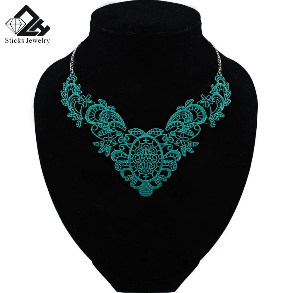 Очаровательное ожерелье в винтажном стиле стимпанк с голубым кружевом, популярное ювелирное изделие, Прямая поставка с фабрики, бесплатная доставка