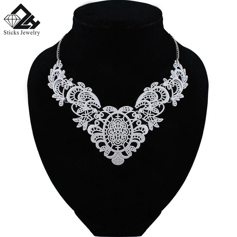 Трендовое ожерелье для женщин из цинкового сплава, кружевное открытое белое K покрытие, подвеска с очаровательным воротником