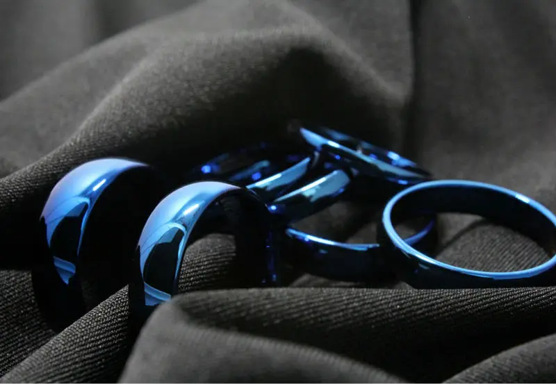 Это обручальное Кольцо изготовлено из полированного синего карбида вольфрама и шириной 8 мм для удобного дизайна свадебного браслета.