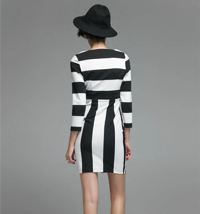 Женское офисное платье осень круглый воротник черный и Белое платье с принтом зебры, рукав три четверти, модное женское сексуальное платье