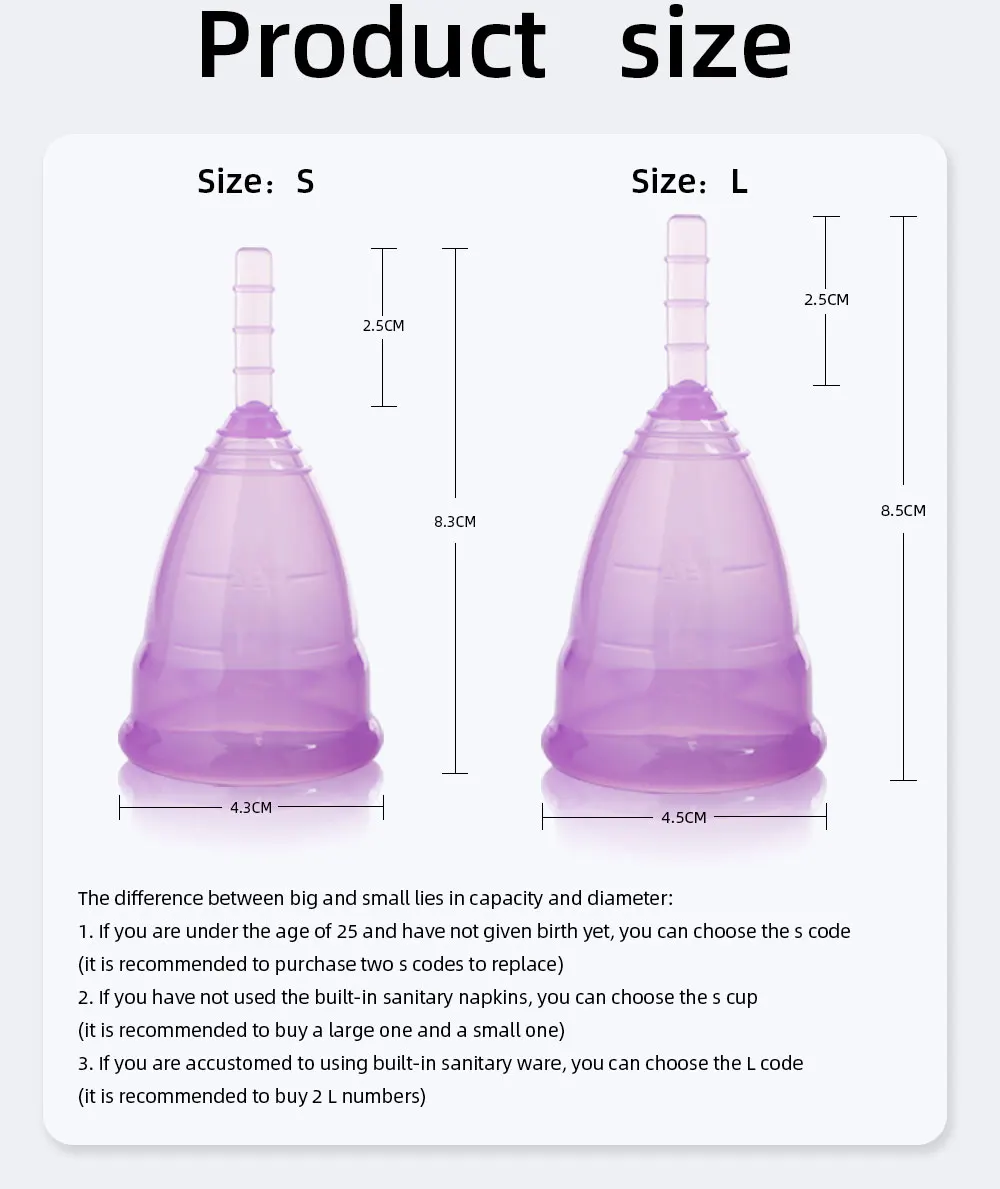 1. Медицинский силикон copa Менструальный, 0 побочных эффектов, используйте 12 часов,