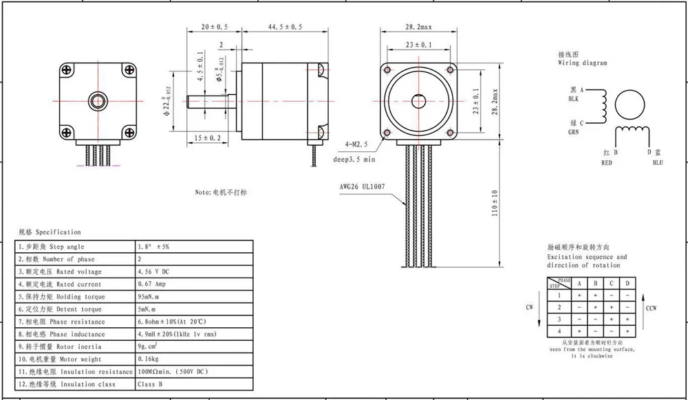 Повышение температуры: 80 °C Макс.Температура окружающей среды: -20 °C ~ + 50 °CСопротивление изоляции: 100MΩ мин., 500VDCДиэлектрическая прочность: 500 В переменного тока в течение 1 минутыВал Rdial Play : 0.02Max.(450g-нагрузка)Осевой вал: 0.08Max.(450g-нагрузка)Макс. Радиальная сила: 28N (20 мм от фланца)Макс. Осевая сила: 10NГибридные шаговые двигатели1. Заводская цена, высокое качество, быстрая доставкаПрименение: