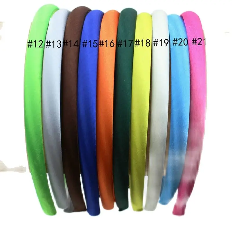 21 цвет, бесплатная доставка, 1 см, детская цветная атласная повязка для волос, покрытая смоляной лентой, детские повязки на голову
