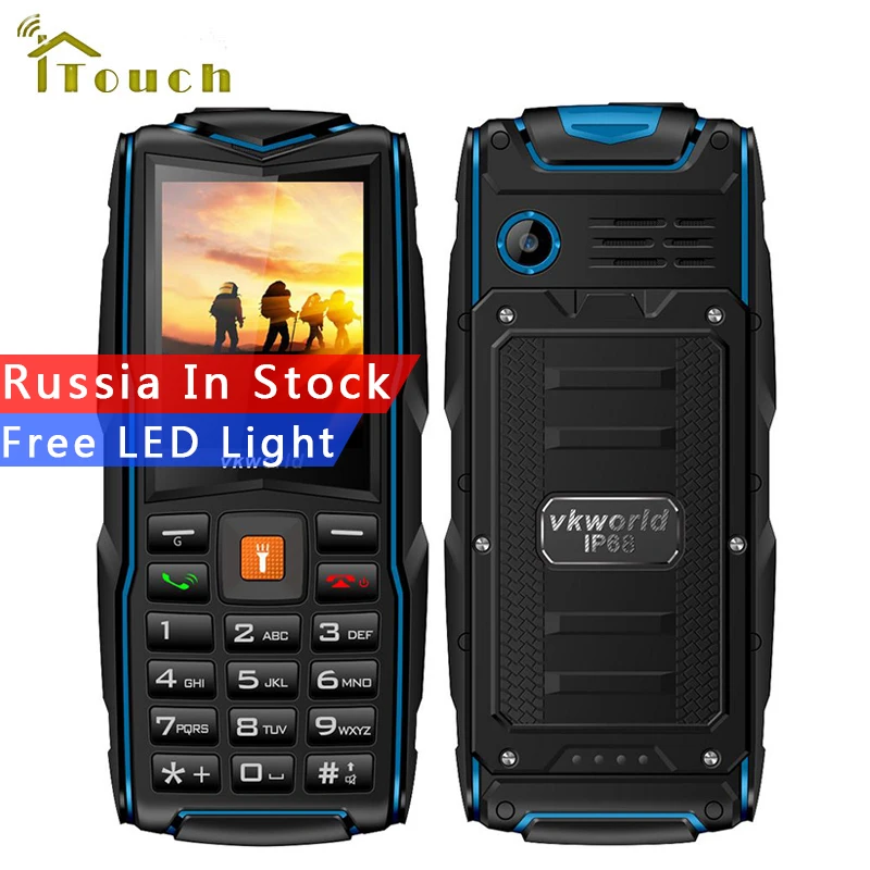 Оригинальный vkworld новый камень V3 IP68 Водонепроницаемый 2.4 дюймов мобильный телефон GSM FM Русская клавиатура 3 sim карты слот 3000 мАч мобильный телефон