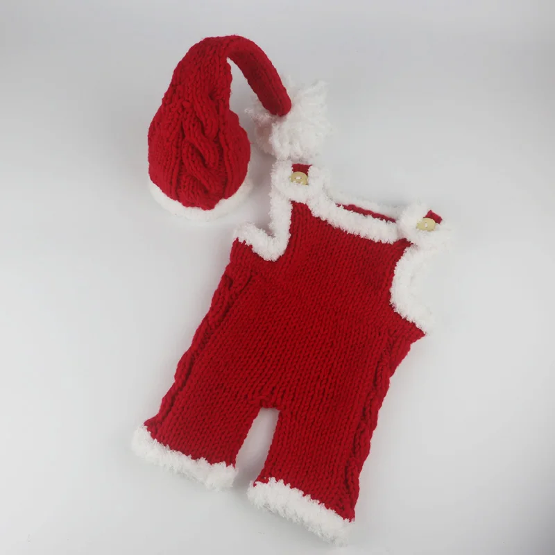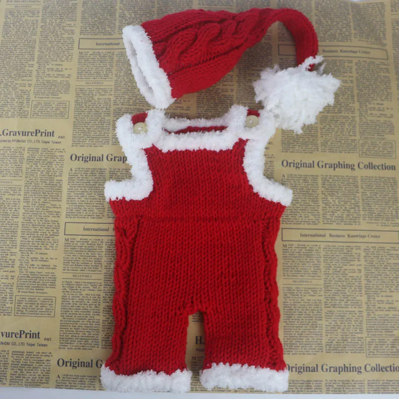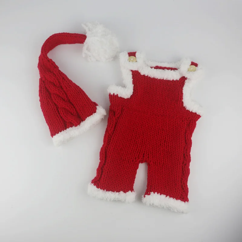 Christmas costume set photography props handmade knit baby suspenders winter hat and clothing for infant newborn crochet outfits