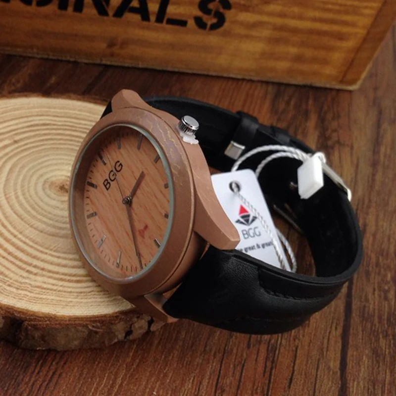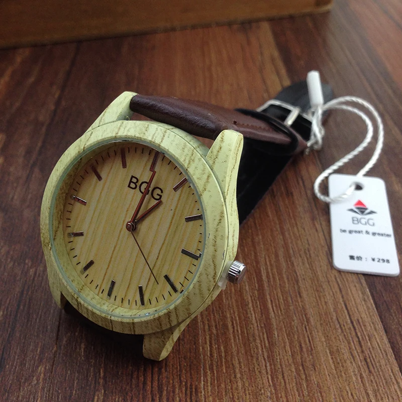 горячие Моды Марка Мужские Часы Класса Люкс Имитация Деревянные Часы Мужчины Винтаж Кожа Кварцевые Цвет Древесины Мужской Часы Часы Водонепроницаемый