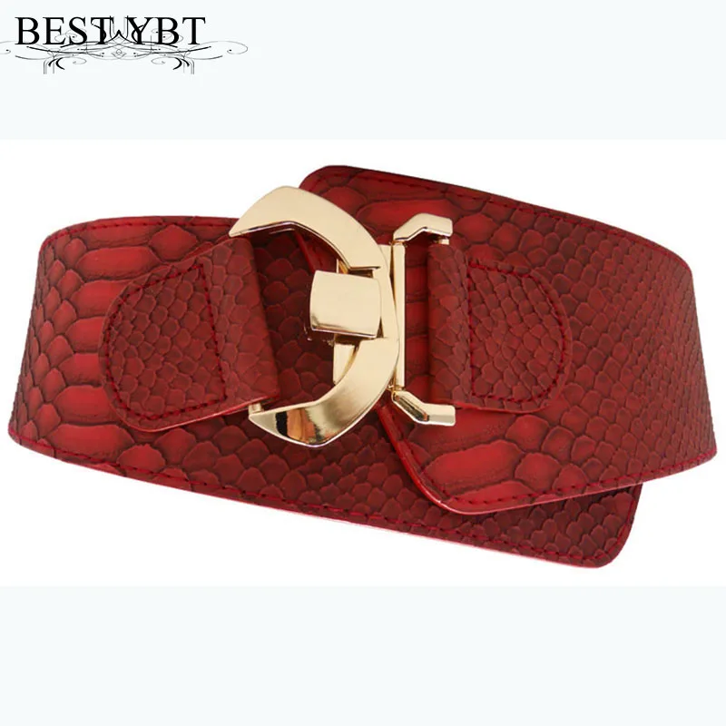 2020 Best YBT Women Imitation leather Belt Alloy Hook Buckle Belt Fashion Wide Elastic