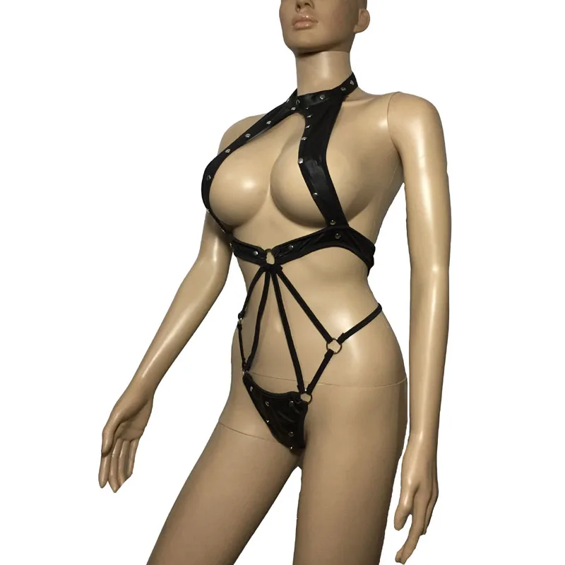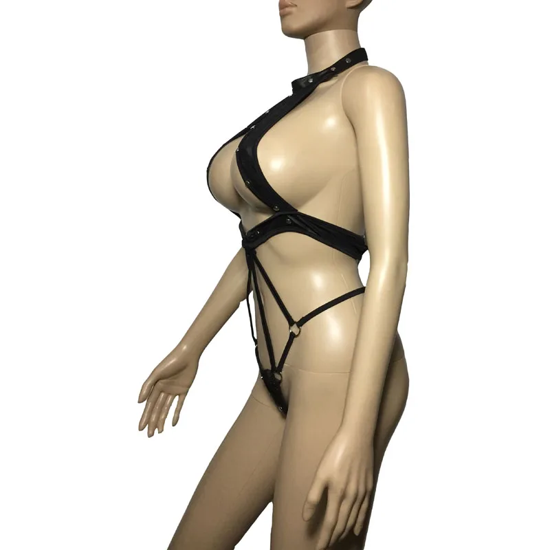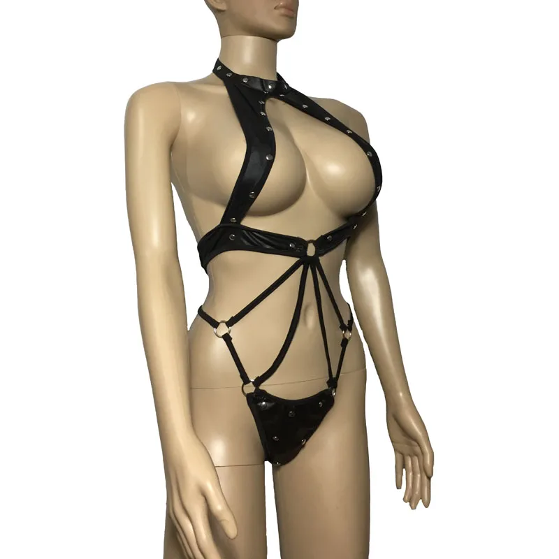 Этот костюм для ролевых игр имеет металлические заклепки и дизайн с открытым корпусом. Отлично подходит для косплея Фетиш. Размер, обхват груди 80-96 см, обхват талии: свободный обхват бедер: 85-99 см Материал: искусственная кожа Посылка: одно платье Тедди