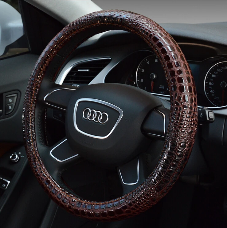 Крокодиловый фирменный дизайн, автомобильный чехол на руль, высококачественное кожаное колесо, чехлы для стайлинга интерьера, автомобильные аксессуары