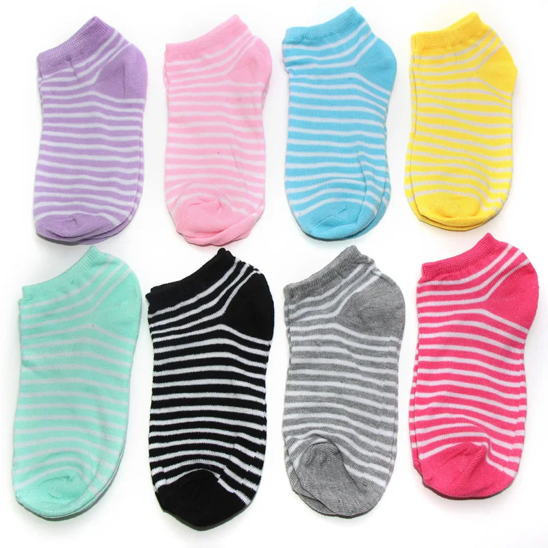 5 пар/лот, модные новые повседневные однотонные милые носки в полоску ярких цветов с принтом для девочек гибкие милые носки для женщин, бесплатная доставка