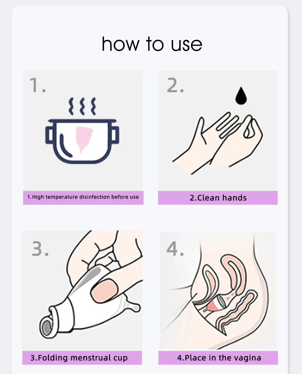 5. Менструальные чашки должны быть стерилизованы перед использованием, можно выбрать специальный Стерилизатор Дезинфекции, также может быть в кипящей воде дезинфекции