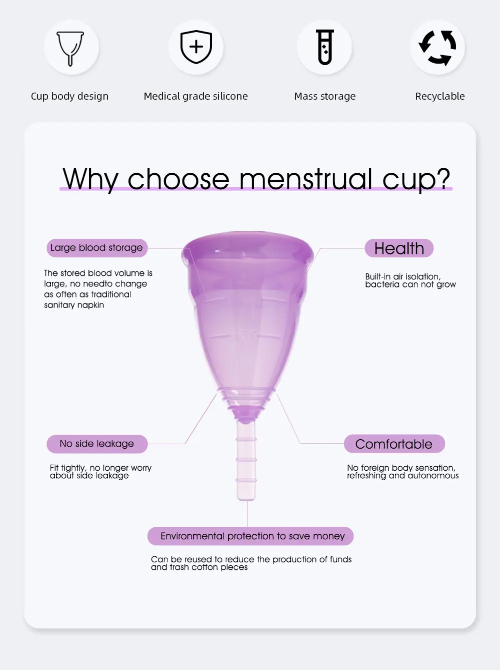 1. Медицинский силикон copa Менструальный, 0 побочных эффектов, используйте 12 часов,