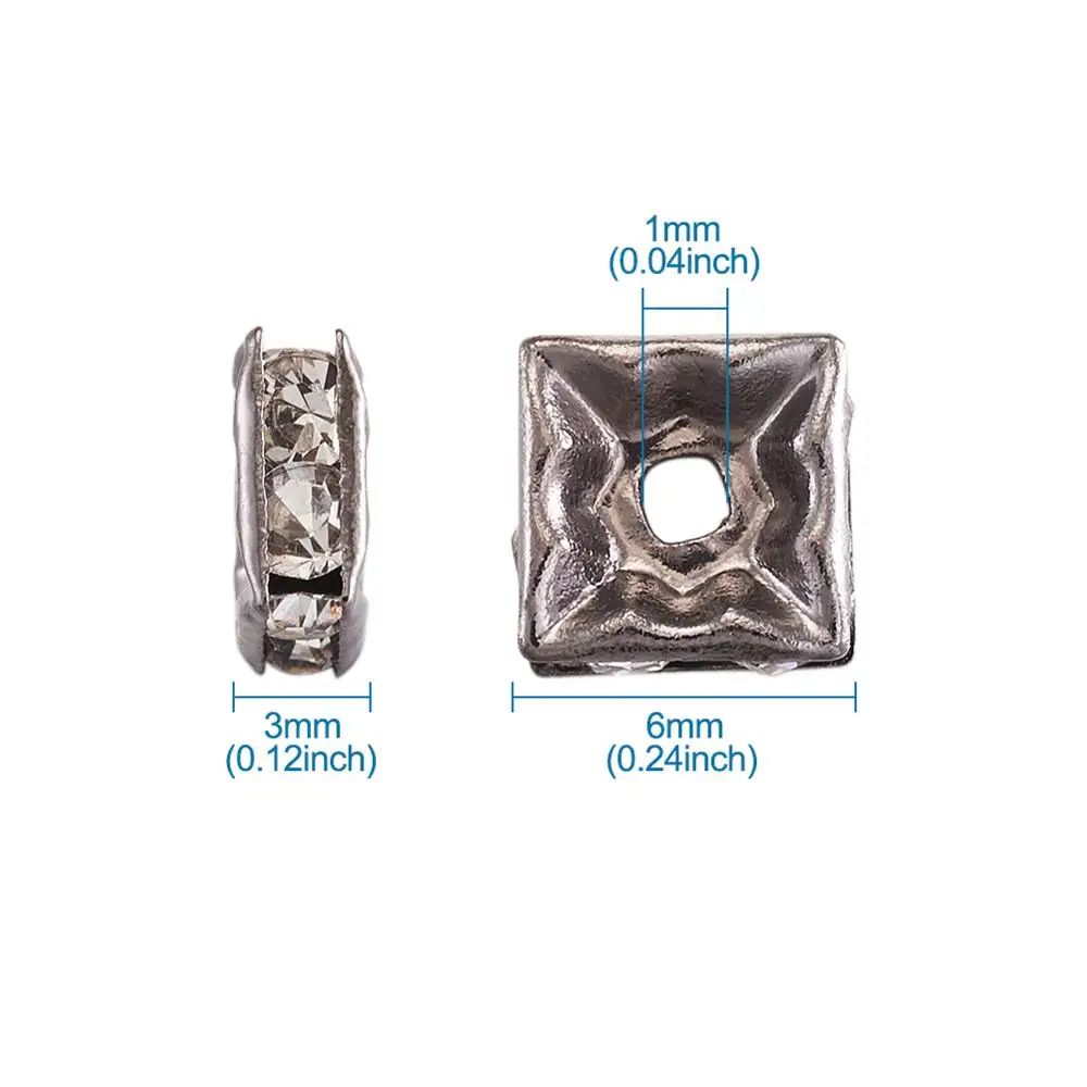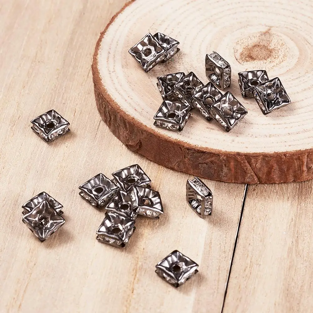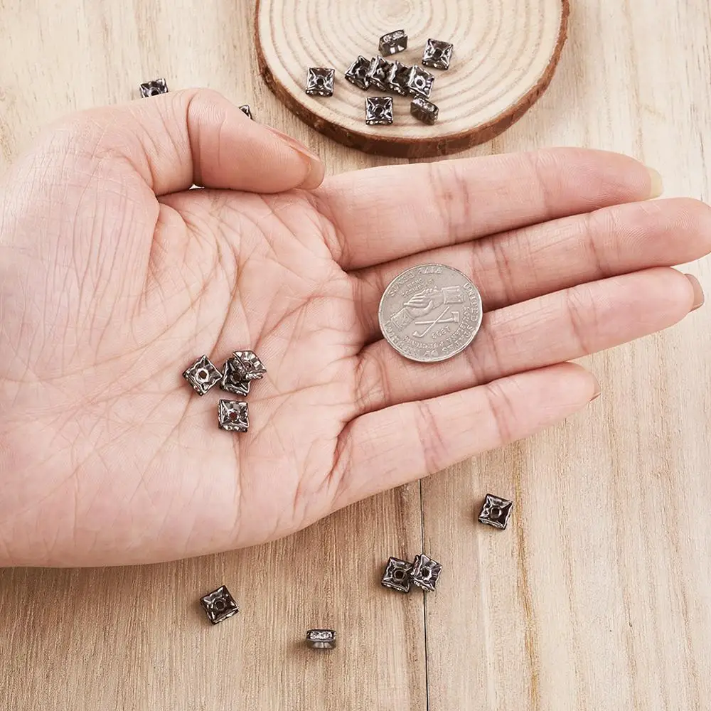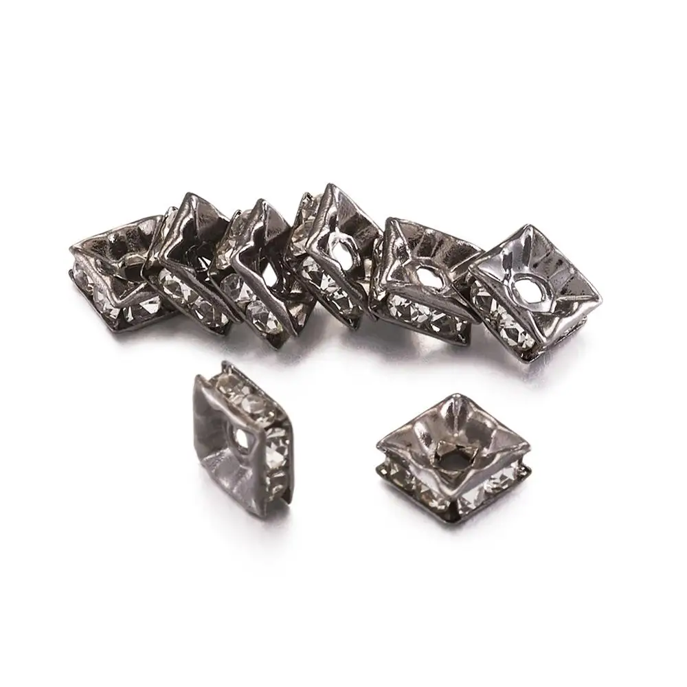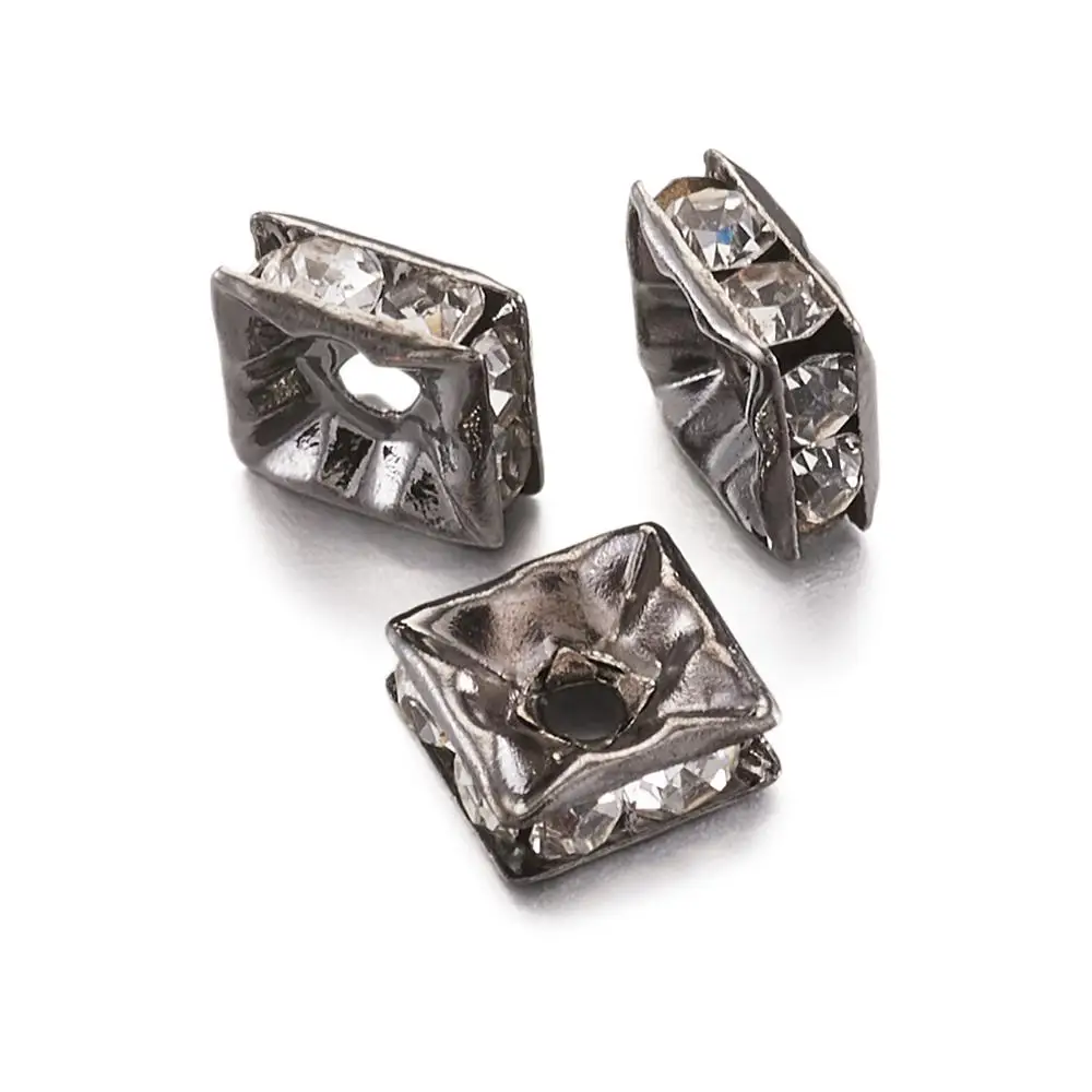 Латунные бусины класса А стразы, черные, квадратные, хрустальные