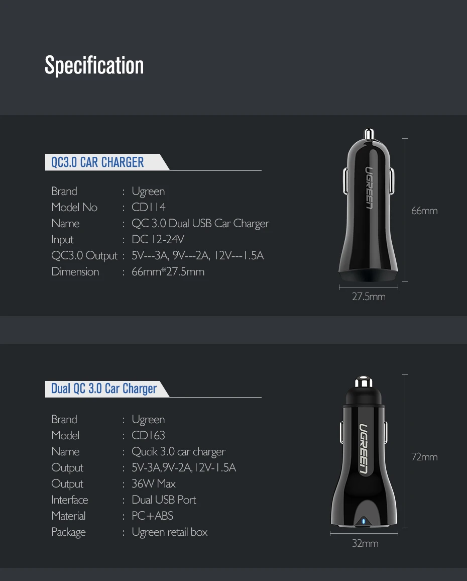 QC3.0 автомобильное зарядное устройство