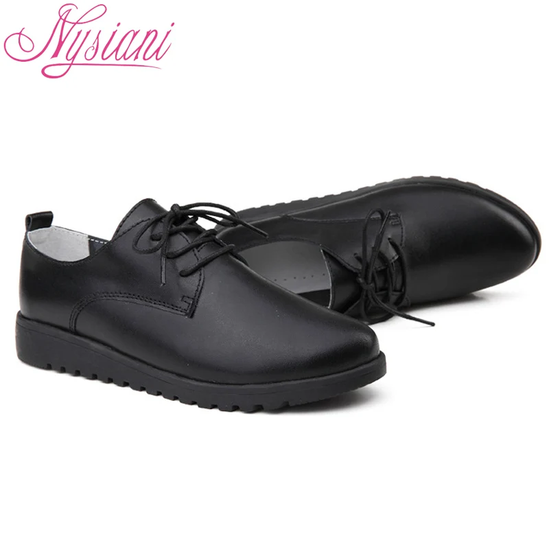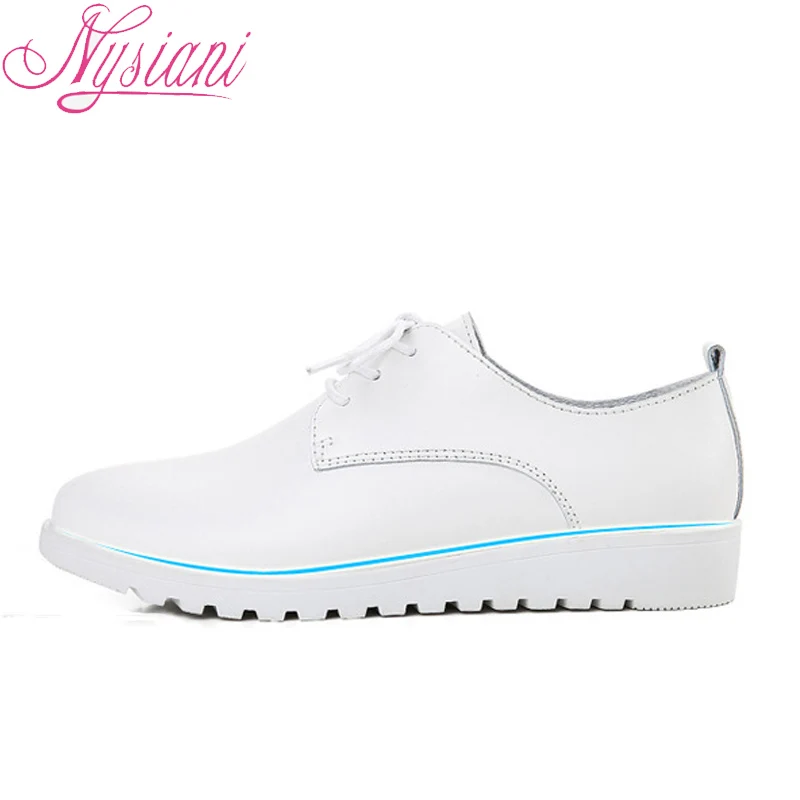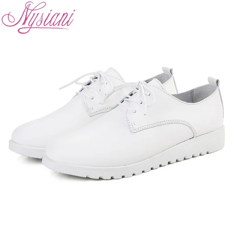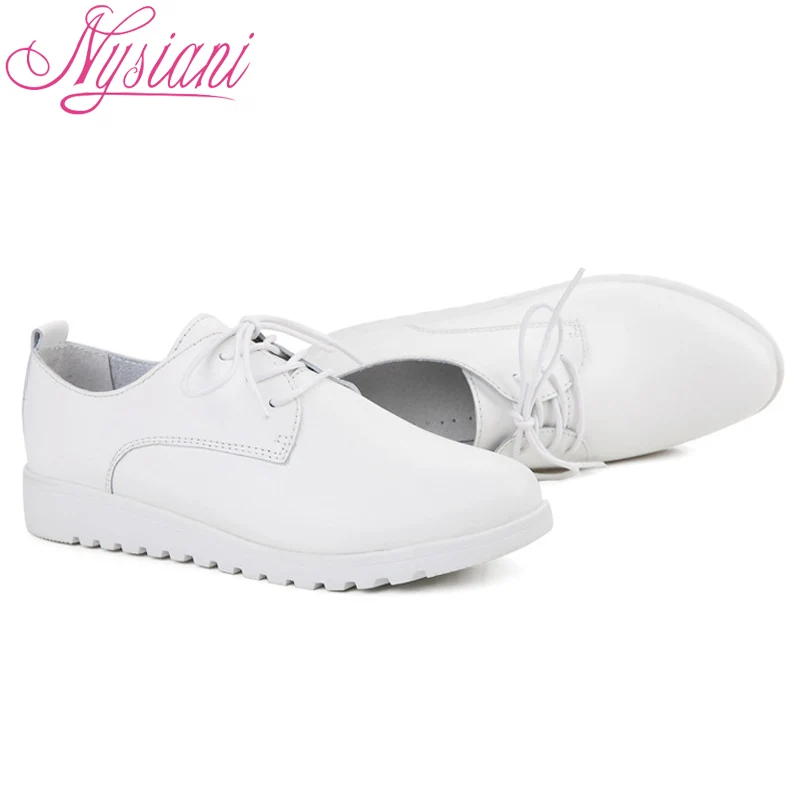 Nysiani 2017 Разделение кожаные белые туфли для Женская Осенняя обувь в британском стиле Повседневная обувь на шнуровке женские лоферы на плоской подошве обувь для мам