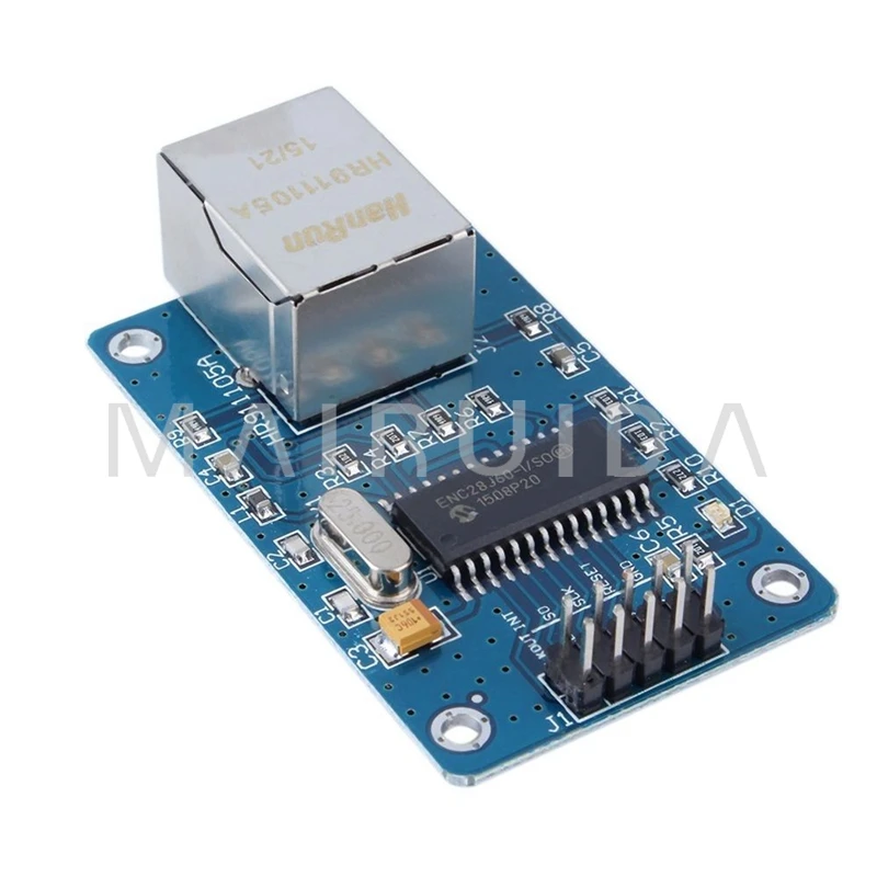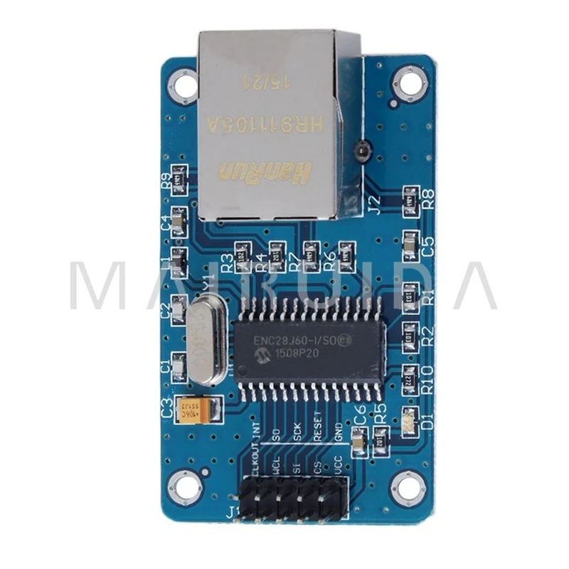Product Description: 1,on-board ENC28J60/SS chip 2,the board 25MHZ crystal 3,onboard HR911105A network interface,3.3 V Pin-powered 5,PCB size: 48.8mmx18.5mm