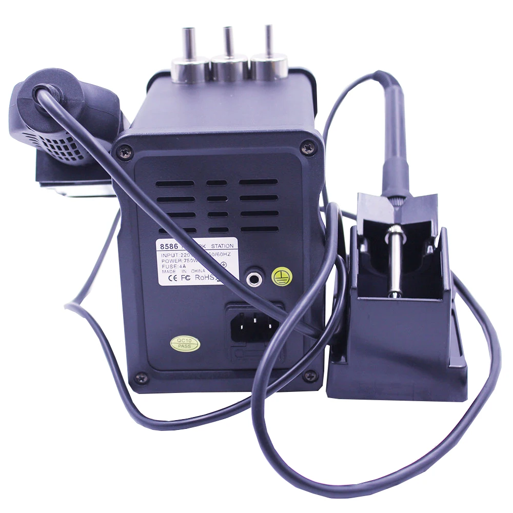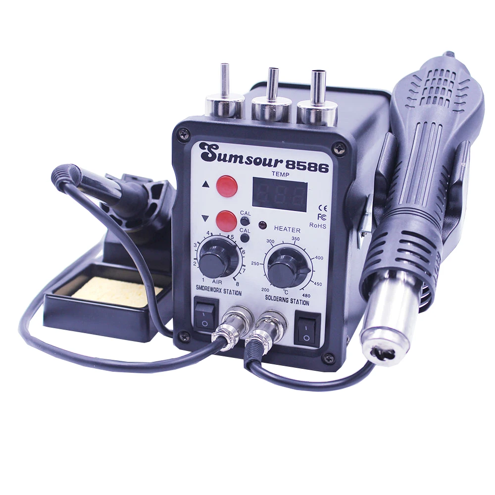 1x2в1 паяльная станция 1 x держатель 1 x Губка (Иногда протирайте наконечники для пайки) 3 насадки (5 мм, 8 мм, 12 мм) 1 x пистолет горячего воздуха 1 х горячее железо 1 x подставка 1 х Кабель питания 1 x IC съемник 1 х Руководство 1 x нагреватель горячего воздуха 1 х паяльник нагреватель 12 железных наконечников 1x0,5 мм Оловянная проволока 1x6-в-1 вспомогательные сварочные инструменты 1 x присоска (939) 1 x фитиль для припоя 2 пинцета ESD