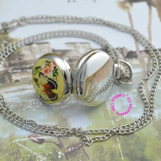 Купон для оптовой цены покупателя хорошее качество серебряное зеркало эскиз рисунок Милая бабочка птица цепь карманные часы ожерелье час