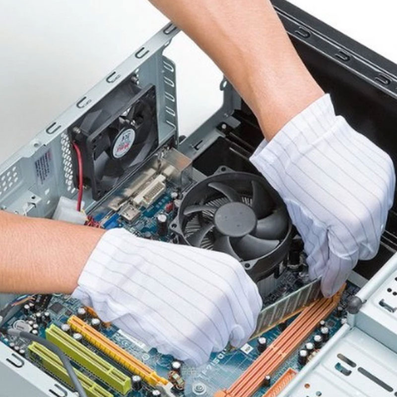 Перчатки ESD отлично используются в элементарной сборке и упаковке, таких как производство электронных компонентов. Низкая стоимость, хорошие антистатические свойства, ловкость и без ворса.