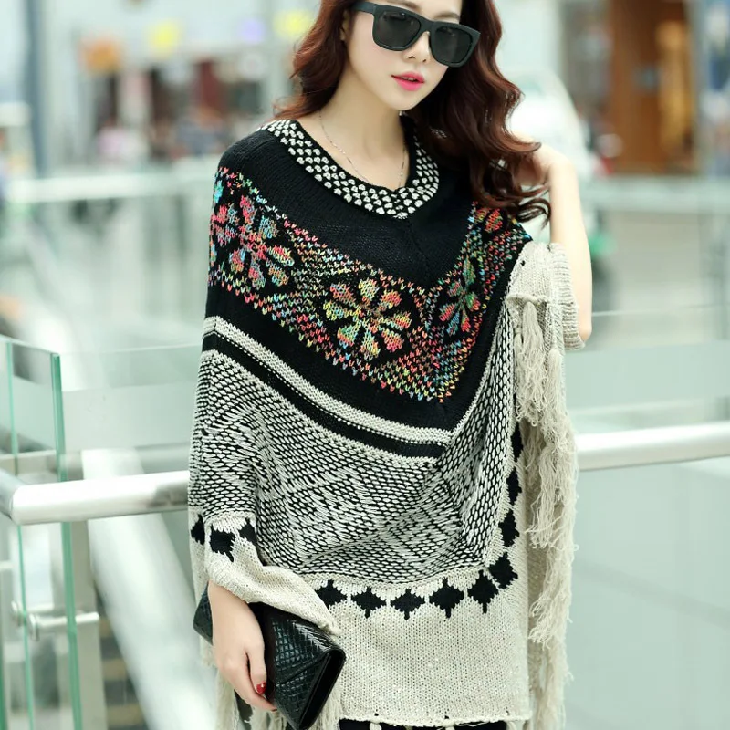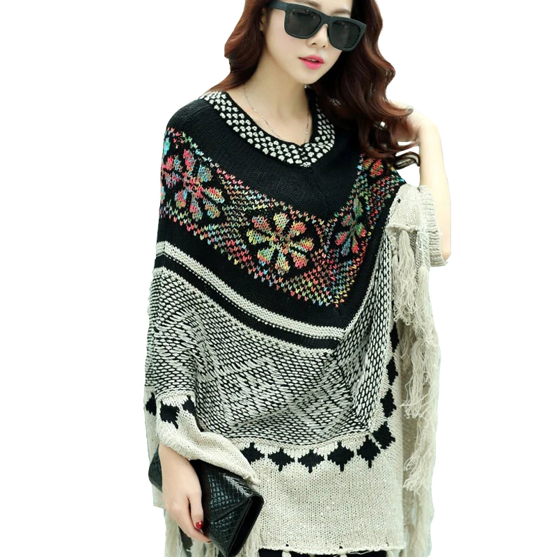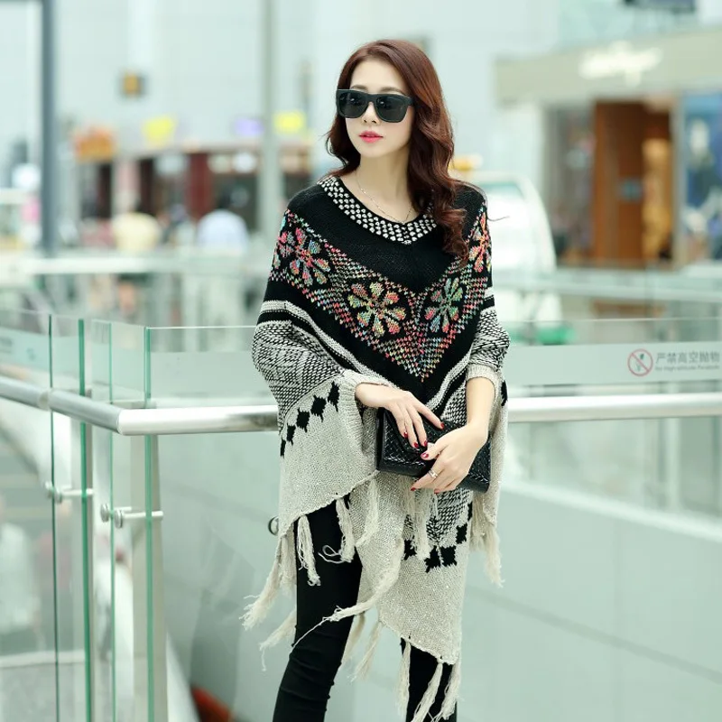 Горячая Распродажа Новая мода 2020 осень зима женские большие шерстяные Пуловеры с рукавами «летучая мышь» шаль пончо SW085