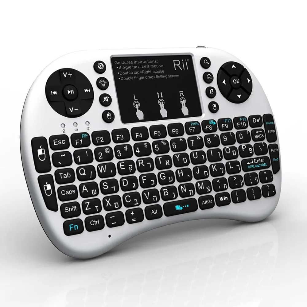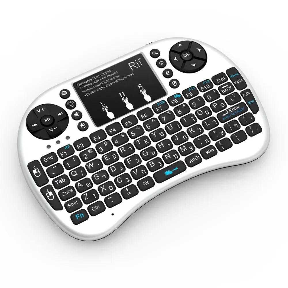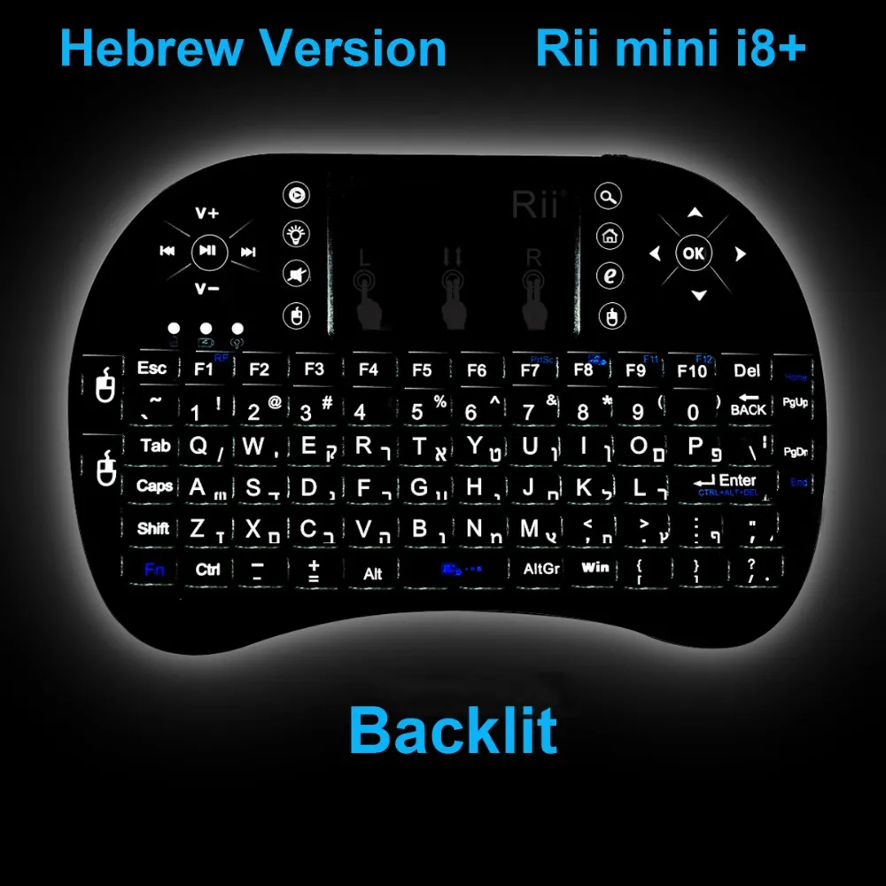 Новинка 2016 мини беспроводная клавиатура 2.4 ГГц Rii i8 + Иврит английская Клавиатура Тачпад мышь с подсветкой для Android TV Box тетрадь Планшеты
