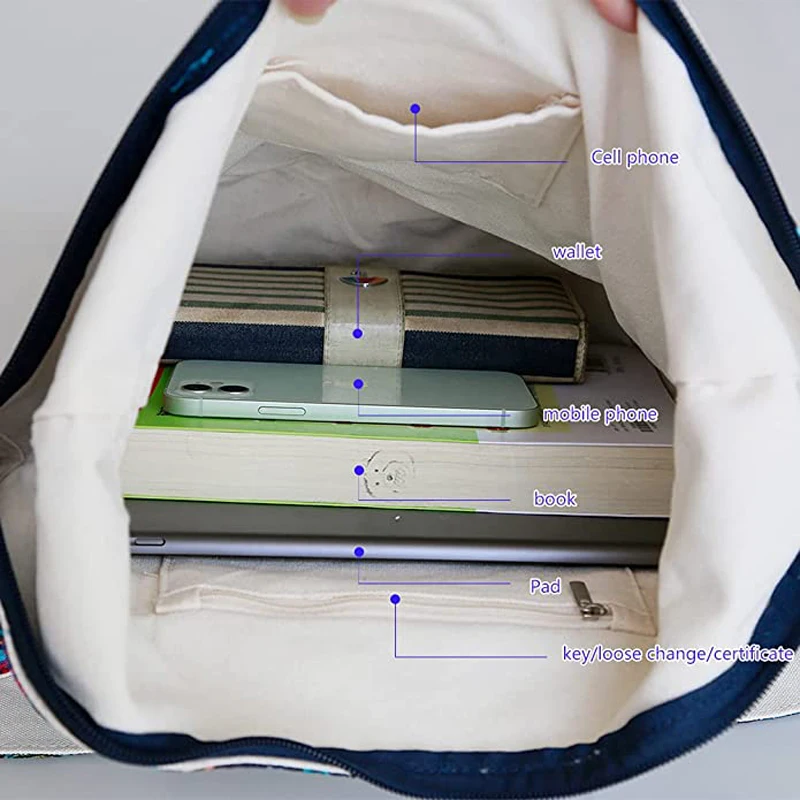 Размер: как на картинке. Он больше 16А бумаги. Вы можете поместить iPad, книги, зонтик от солнца и так далее. Есть один маленький карман и один карман на молнии. Вы можете взять свой мобильный телефон и кредитные карты.
