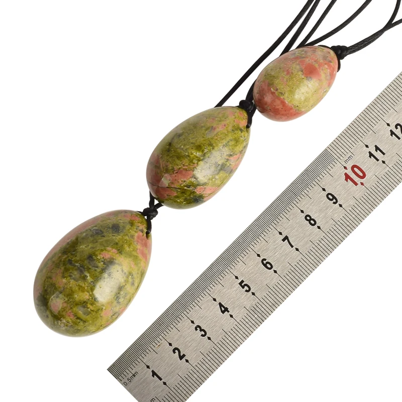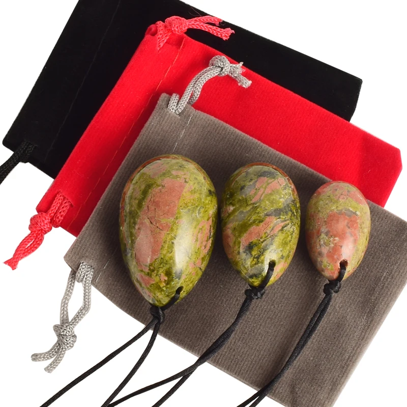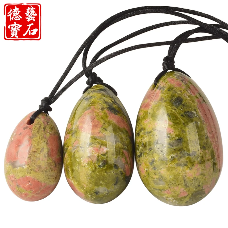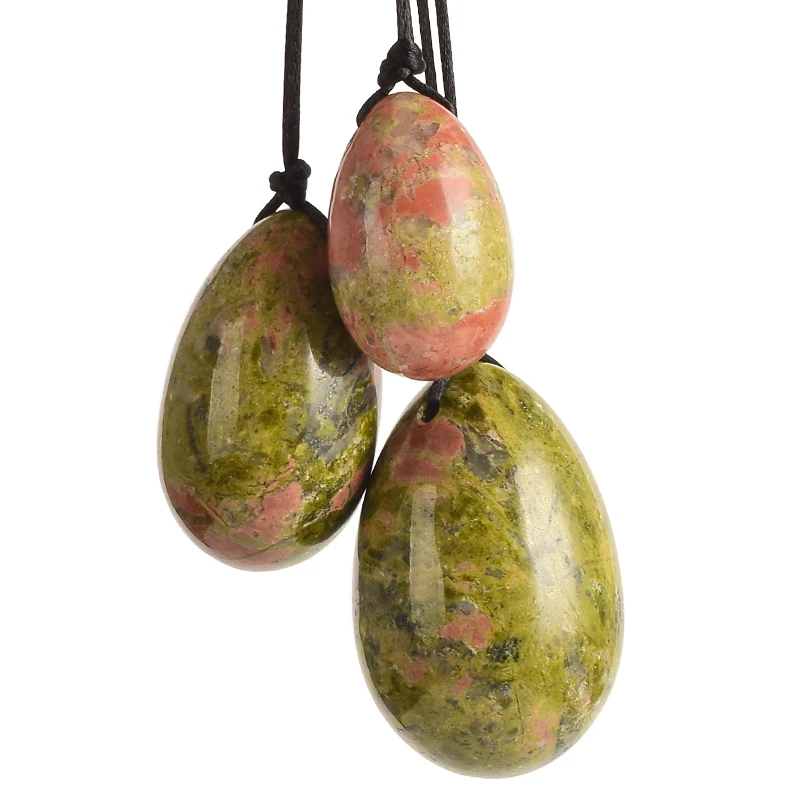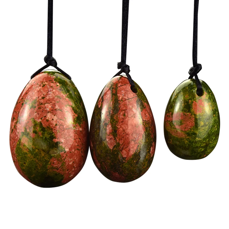 Материал: натуральный унакит Размер: S:30*20 мм, M:40*25 мм, L:45*30 мм Вес нетто: 100-110 г/комплект Использование: Упражнения Кегеля, домашний декор, подарок, исцеление кристаллов