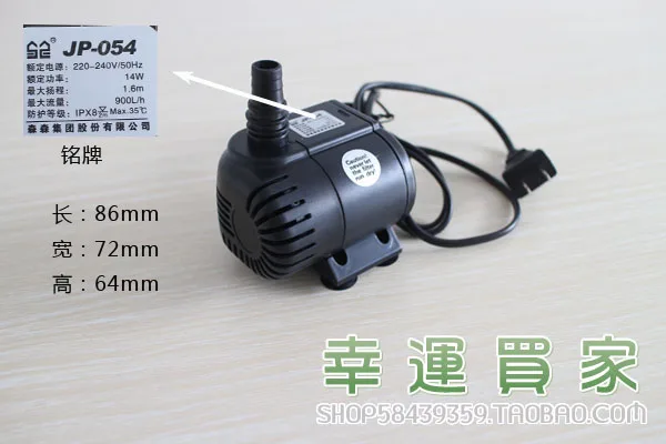 Размеры: 86*72*64 мм;Вес: около 410 граммовМощность: 14 ВтНапряжение: 220-240 В/50 ГцМаксимальный ход: 1,6 м (10% ошибки)Максимальный расход: 900 л/чЦена: 23,58 юаней/тайваньский Примечание: Не используйте без воды!