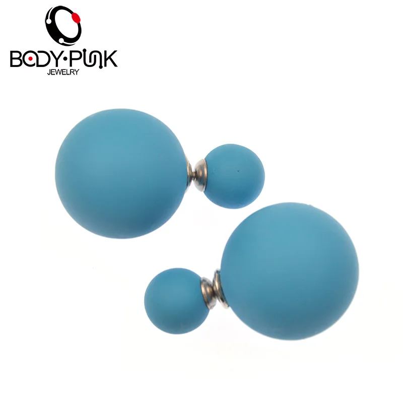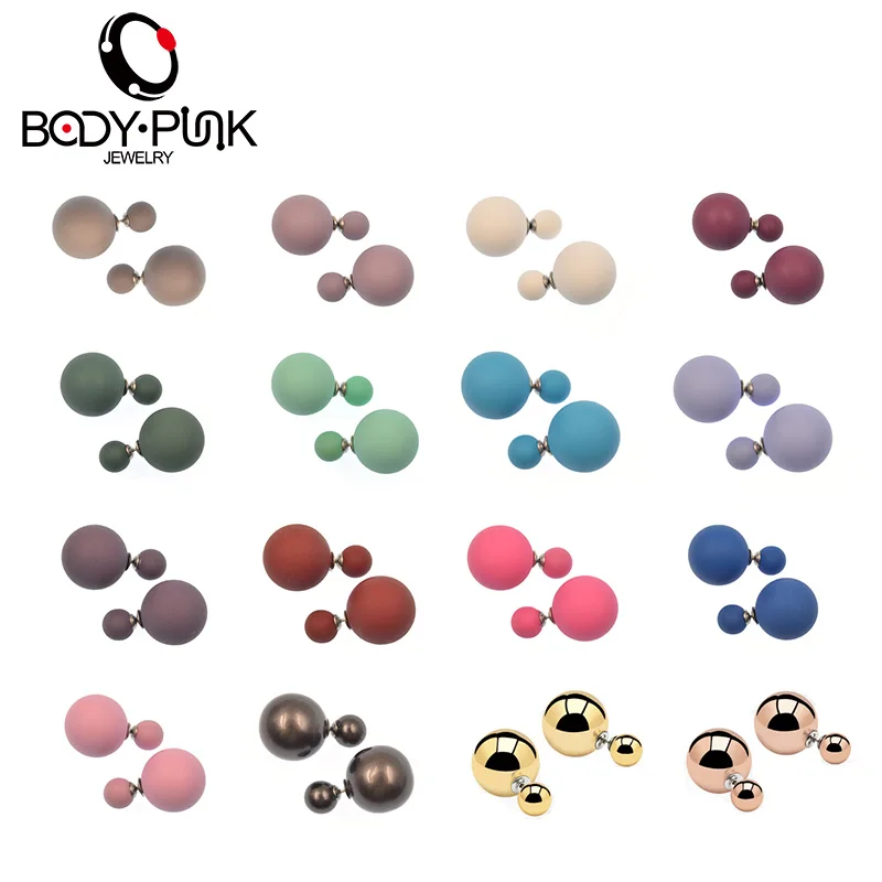 Акриловые/серьги из нержавеющей стали, серьги-гвоздики 0,8 мм, модные серьги из двух шариков, 16 цветов на выбор, ювелирные изделия для тела, ухо 01