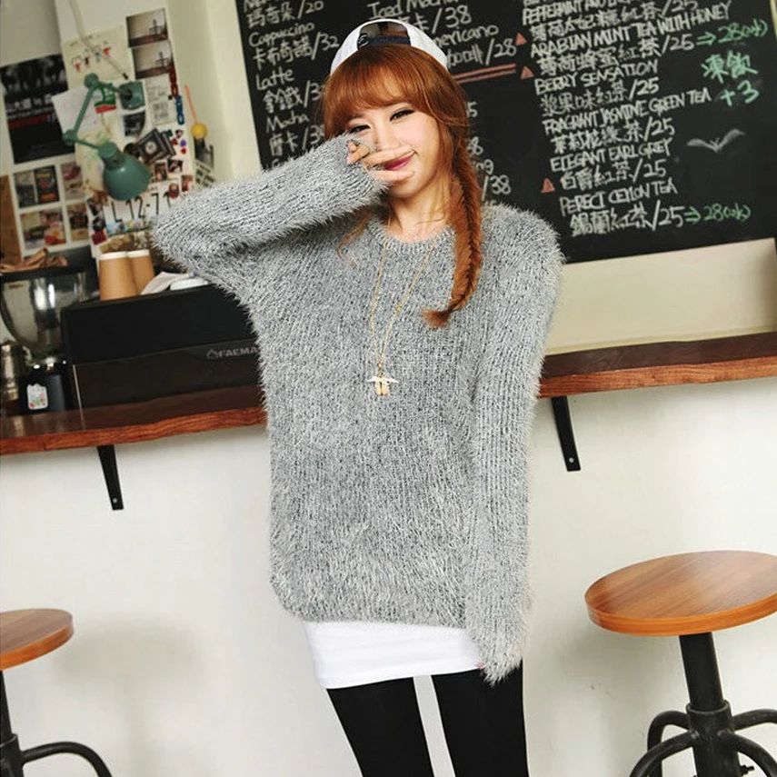 2016 зимний мохеровый свитер для женщин, короткий женский свитер в Корейском стиле, пальто, толстая свободная одежда для колледжа