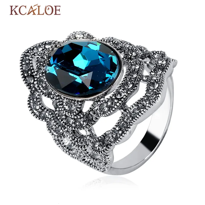 Название: Винтаж Большой серый женские кольца с настоящими Австрийскими кристаллами под старину Стразы кубического циркония Anillos De плата обручальное кольцо с камнем