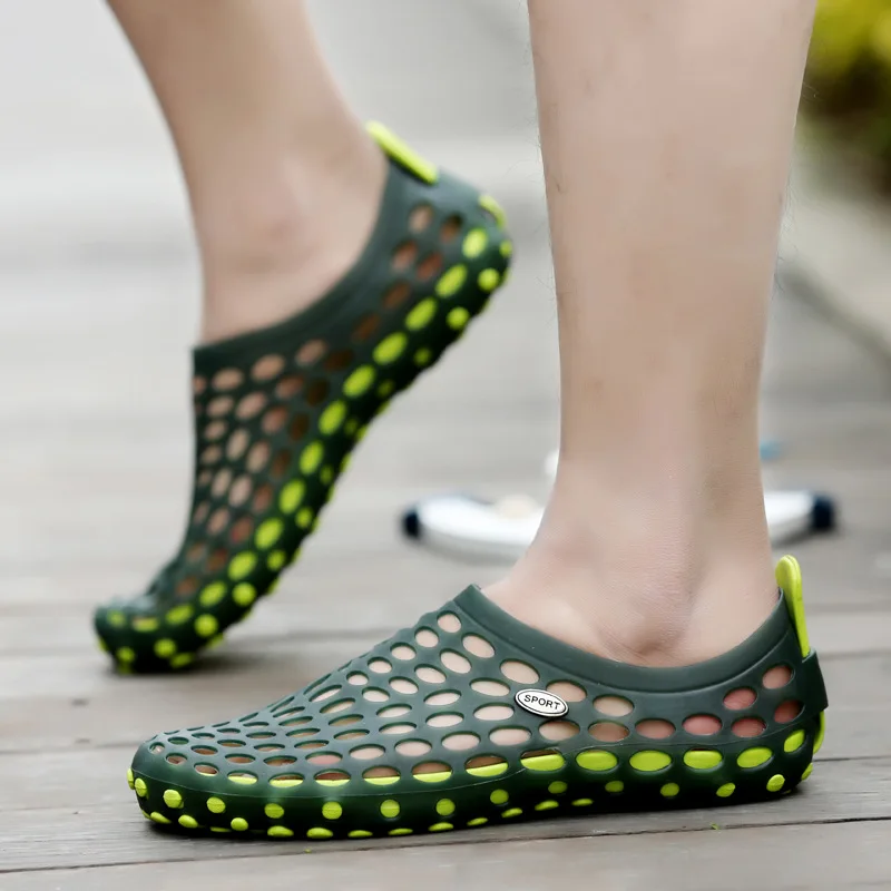 2016, Лето, Новый вырез бренд дизайнер Тапочки Сандалии Мулы и Сабо Сад Обувь для Мужчин Дышащий Массаж Пляж мужской обуви
