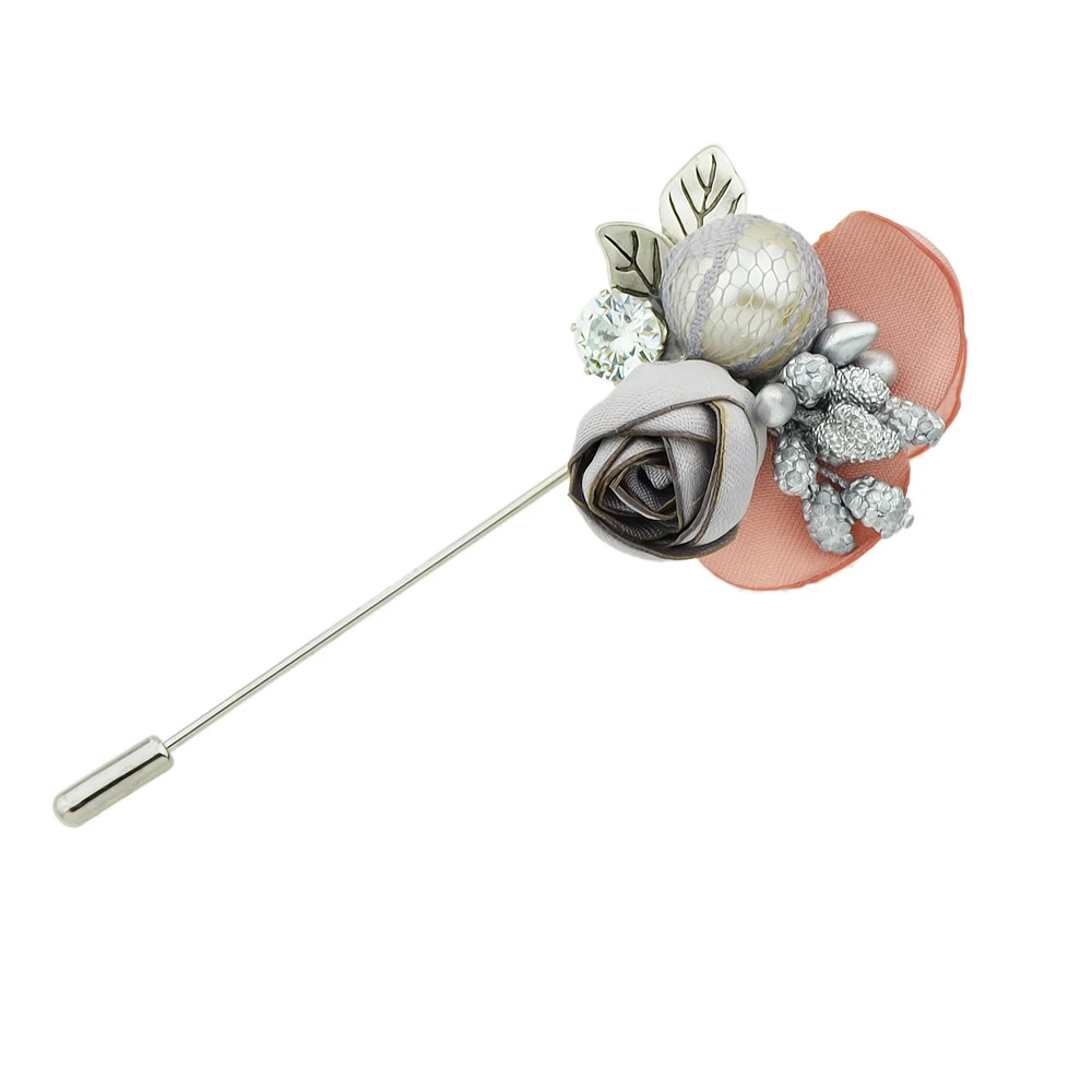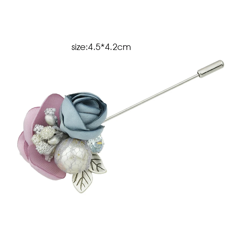 New Jewelry Silver Pin with Rhinestone Created Pearl Colorful Lace Flower Brooch for Women Accessories